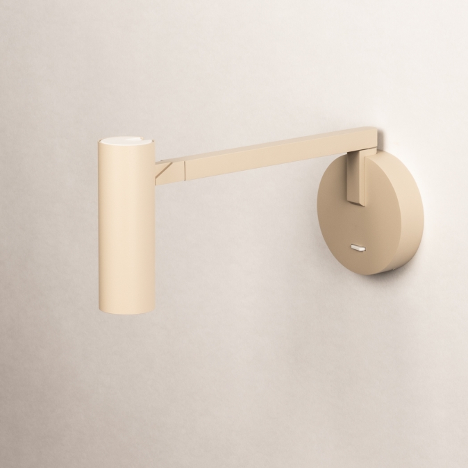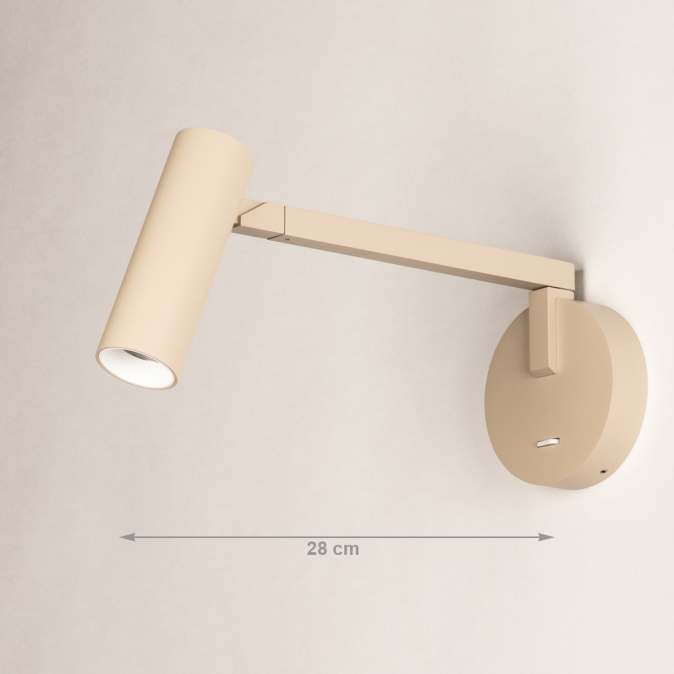Nastavitelné designové minimalistické nástěnné svítidlo s ramenem a vypínačem v béžové barvě
