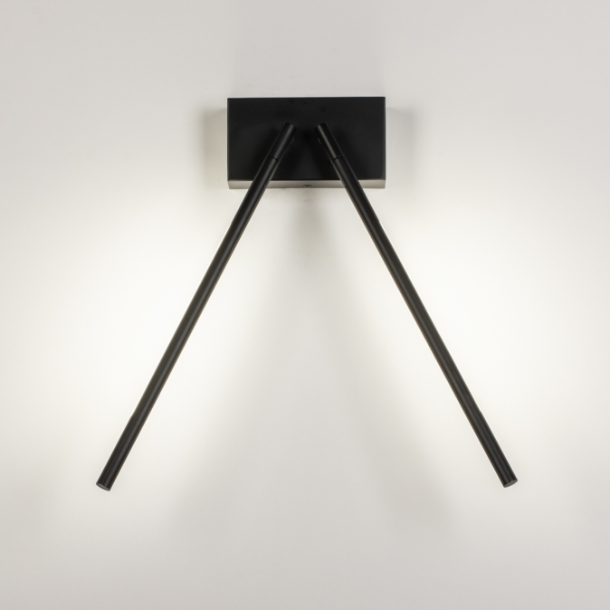 Toto minimalistické nástěnné LED svítidlo zaujme svým jedinečným designem. Obdélníkový nástěnný panel s připevněnými super úzkými trubičkami, které lze otáčet. Trubičky lze otáčet zleva doprava. Na zadní straně prosvítá integrované LED světlo přes bílý plastový proužek. Ale může také svítit dopředu nebo do strany, protože samotnou trubičku lze také otáčet.