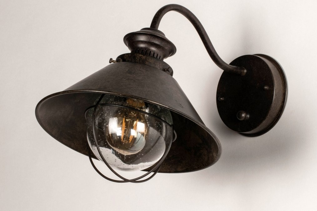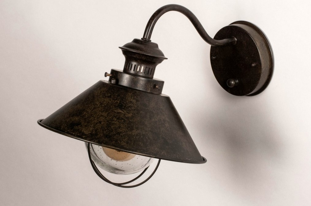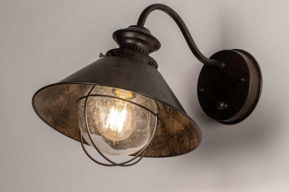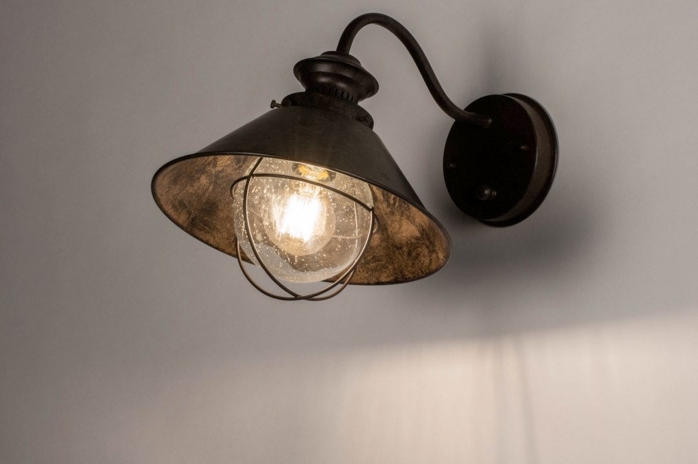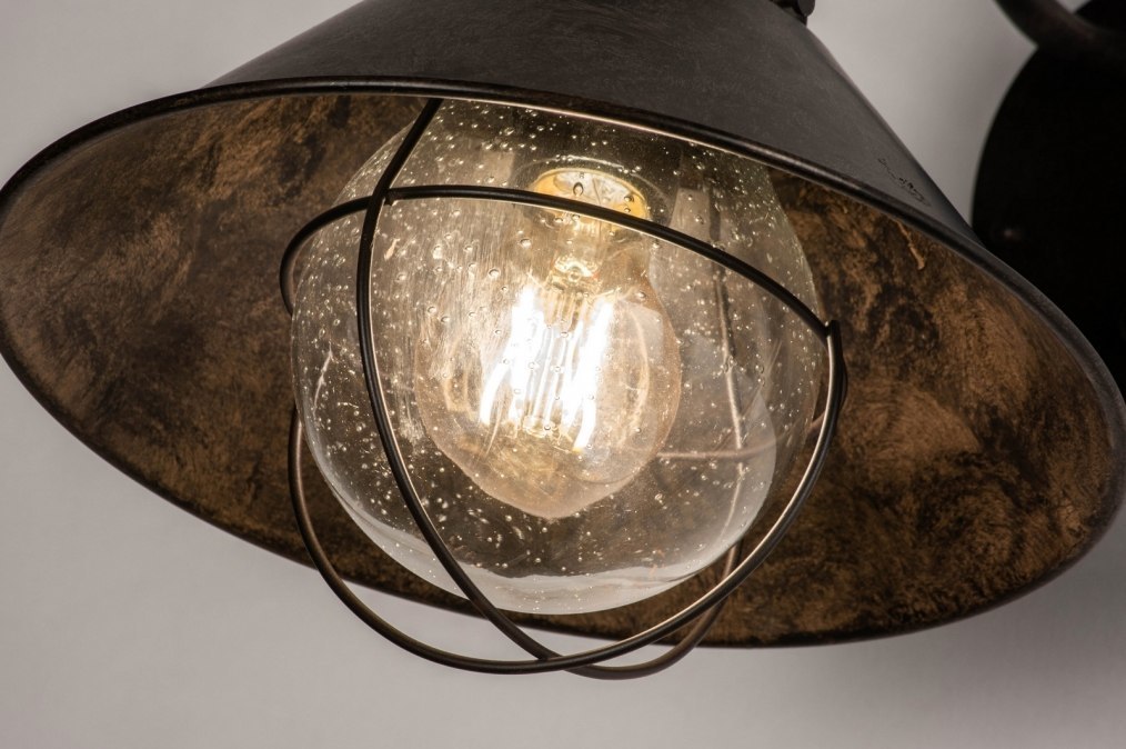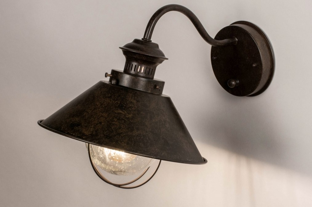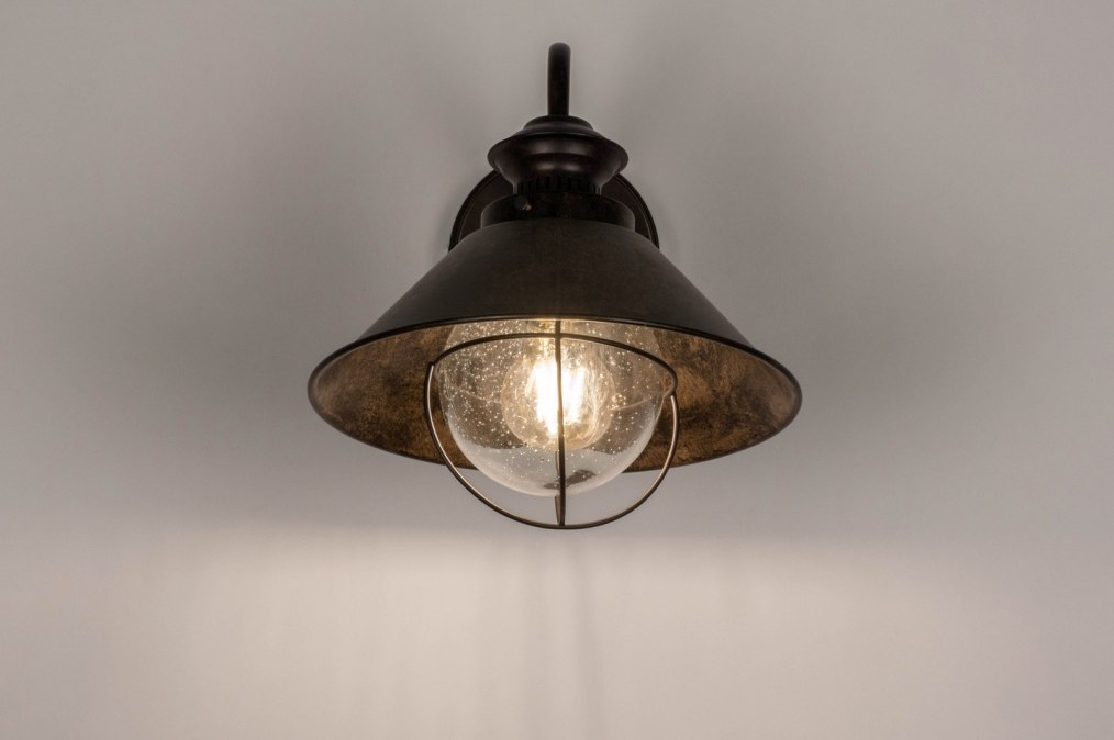 Nástěnné svítidlo v klasickém designu vyrobeno z kovu a čirého skla.