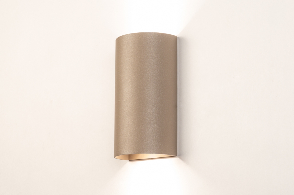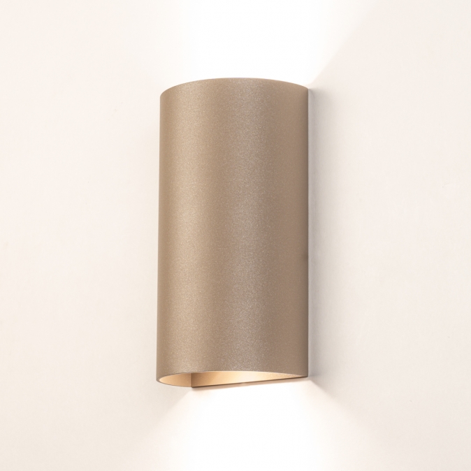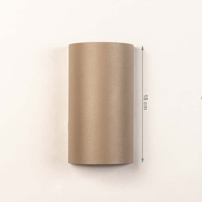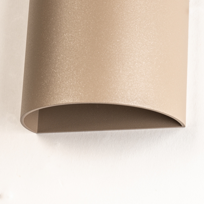 Nástěnné půlkruhové luxusní LED svítidlo do chodby nebo na schodiště v moderním designu vyrobené z hliníku v béžové barvě. Svítidlo je určeno pro dvě žárovky s objímkou GU10 a osvětluje prostor směrem nahoru i dolů. Vhodné také jako doplňkové designové nástěnné svítidlo do obývacího pokoje, jídelny, kuchyně nebo ložnice.