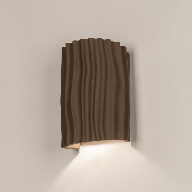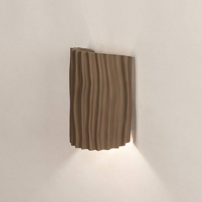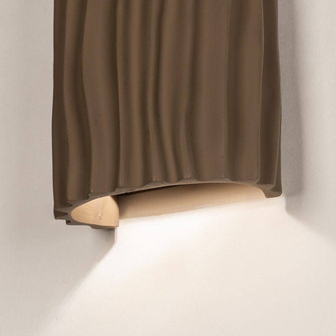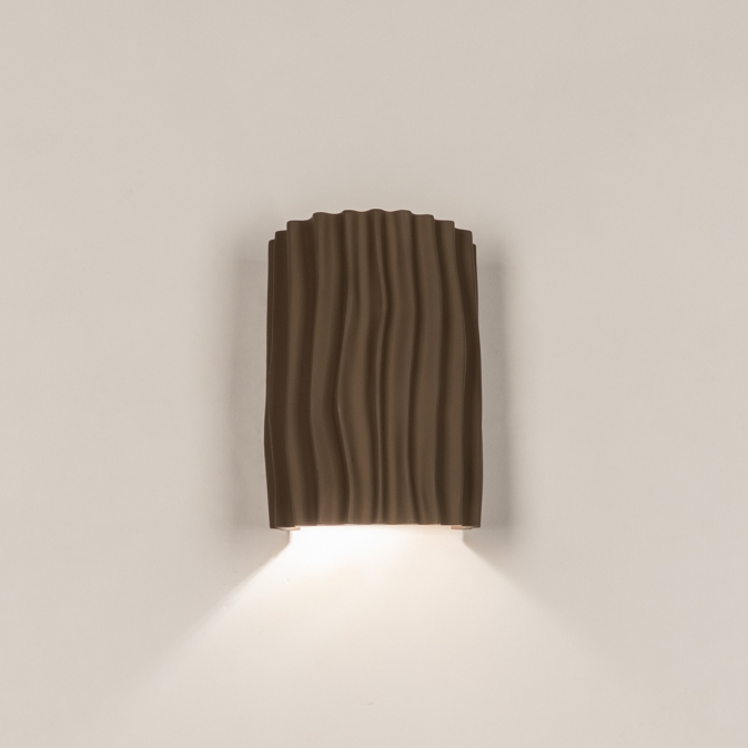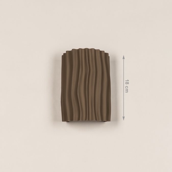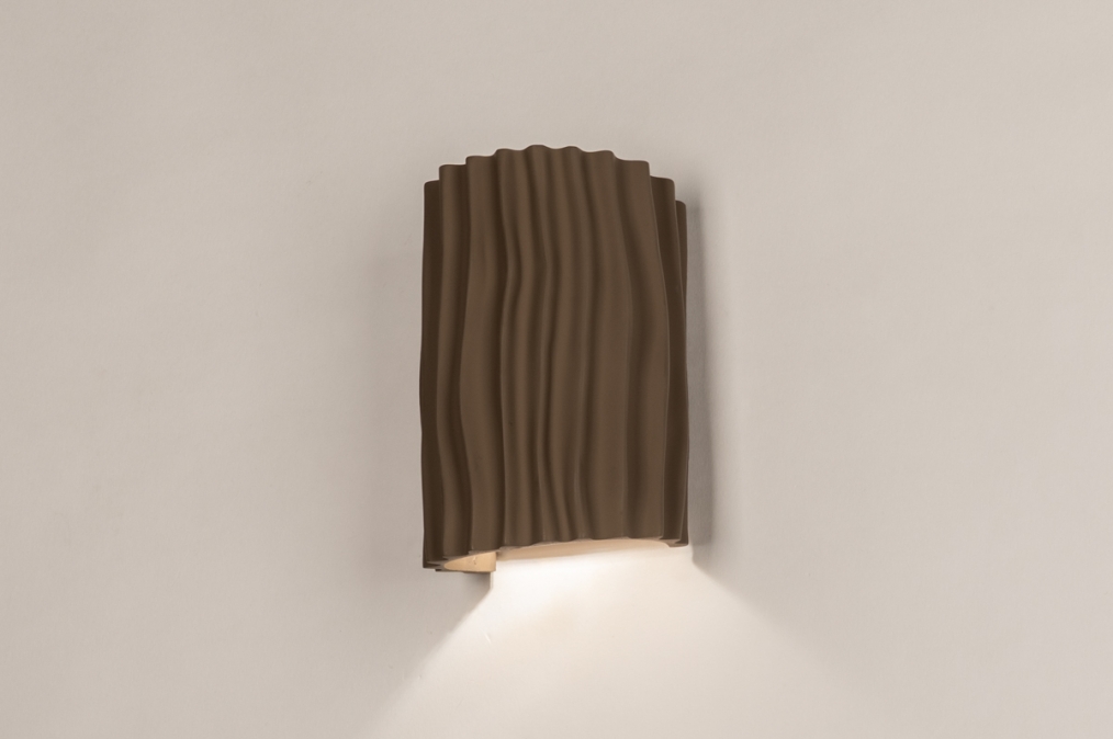 Hnědé nástěnné svítidlo v organickém tvaru. Dodejte svému interiéru nádech přirozené elegance s tímto krásným hnědým nástěnným svítidlem. Polokruhový design s organickými liniemi a tvary činí z této lampy nenápadný, a přesto výrazný doplněk do každé místnosti. Svítidlo je vyrobeno z kvalitní pryskyřice a doplněno jemně hnědým stínidlem, díky čemuž vyzařuje teplo a styl.