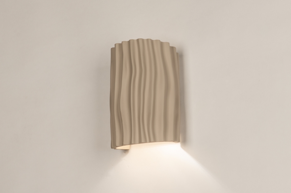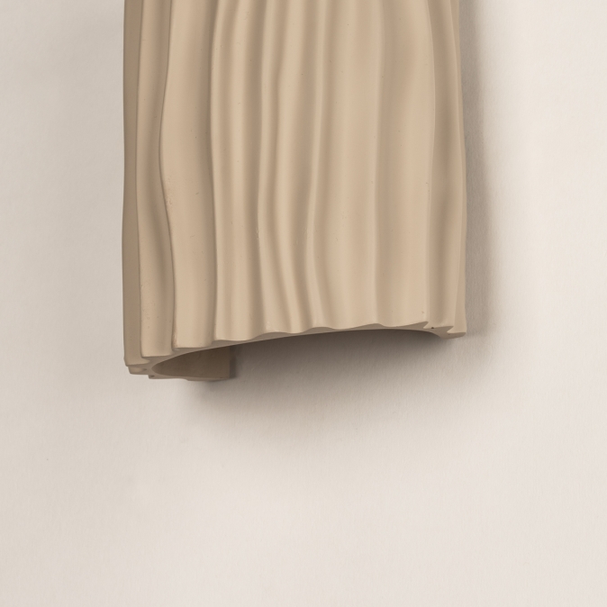 Béžové nástěnné svítidlo v organickém tvaru. Dodejte svému interiéru nádech přirozené elegance s tímto krásným béžovým nástěnným svítidlem. Polokruhový design s organickými liniemi a tvary činí z této lampy nenápadný, a přesto výrazný doplněk do každé místnosti. Svítidlo je vyrobeno z kvalitní pryskyřice a doplněno jemně béžovým stínidlem, díky čemuž vyzařuje teplo a styl.
