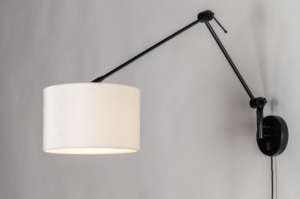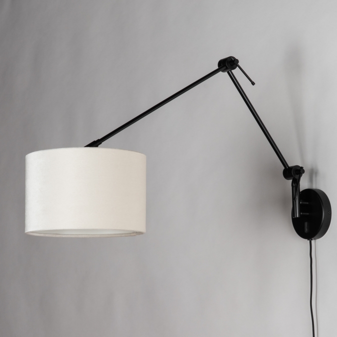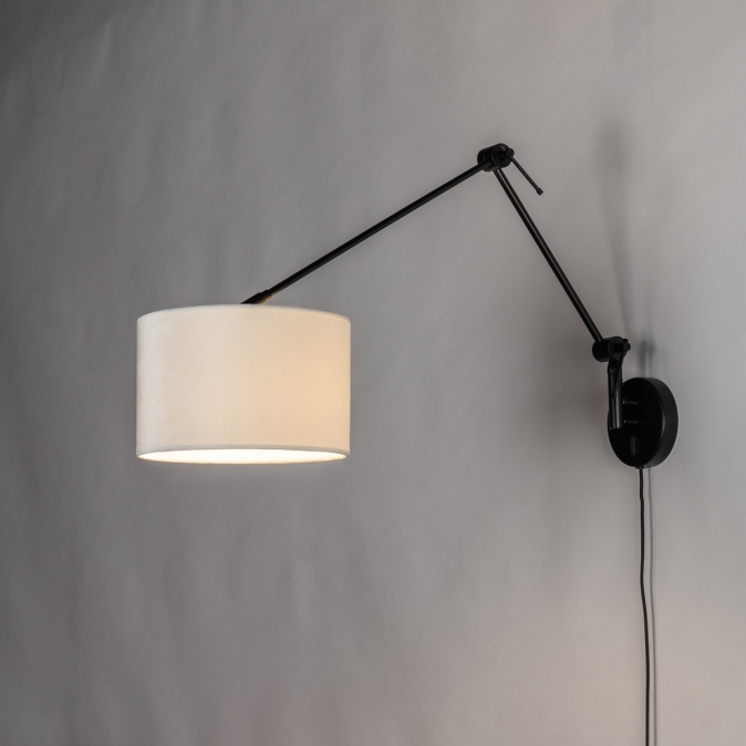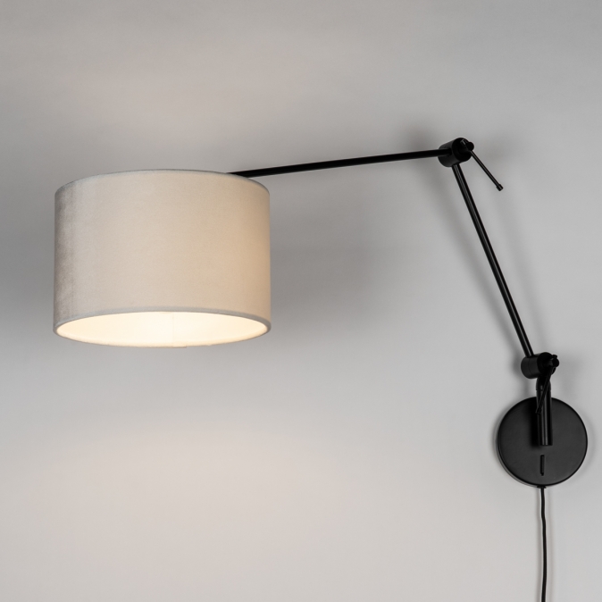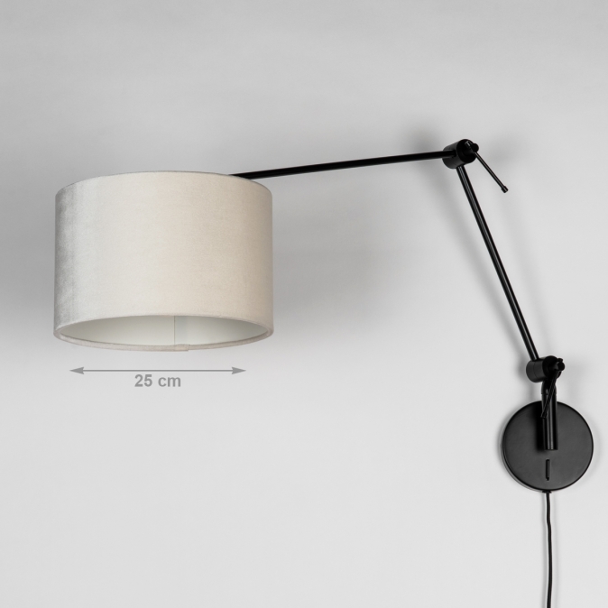 Černé nastavitelné nástěnné svítidlo se sametovým béžovým stínidlem