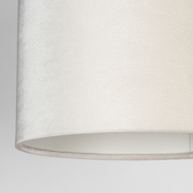 Toto nastavitelné nástěnné svítidlo se skládá z černé konstrukce a béžového sametového stínidla. Vnitřní strana stínidla je bílá, což zajišťuje výborný odraz světla. Samet dodává svítidlu měkký, elegantní vzhled a jeho jemný lesk vytváří různé efekty v závislosti na dopadu světla.