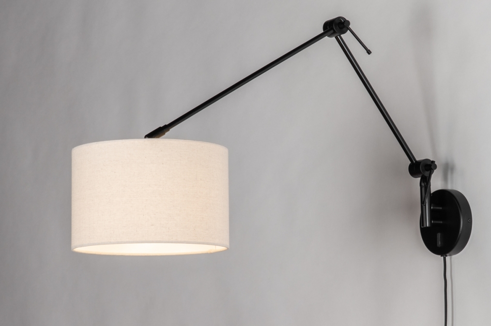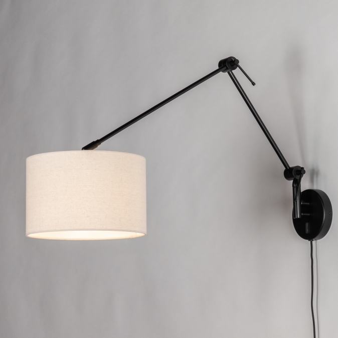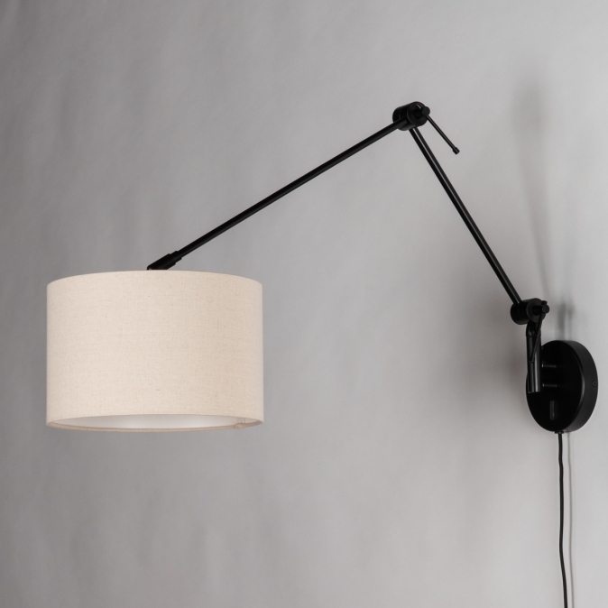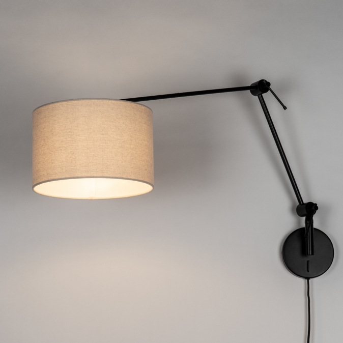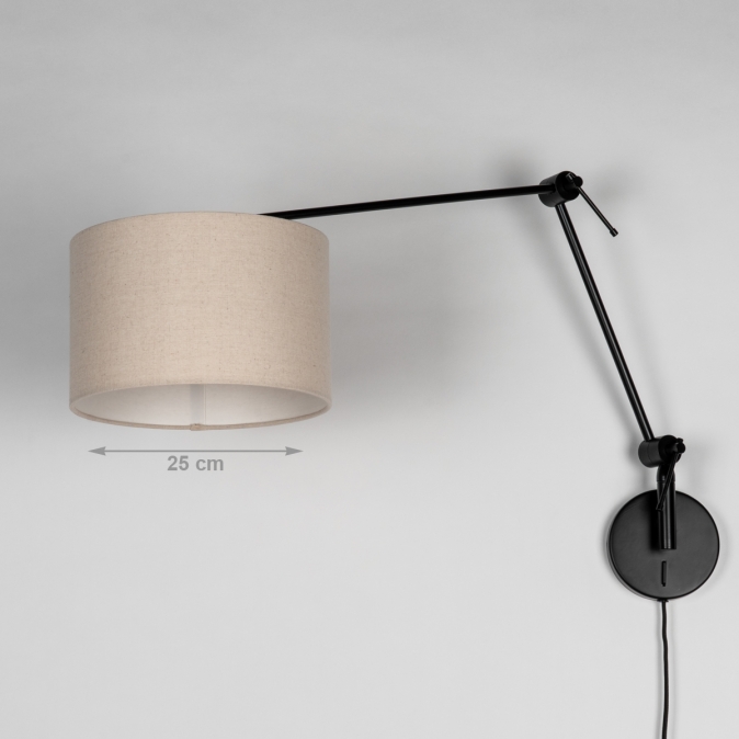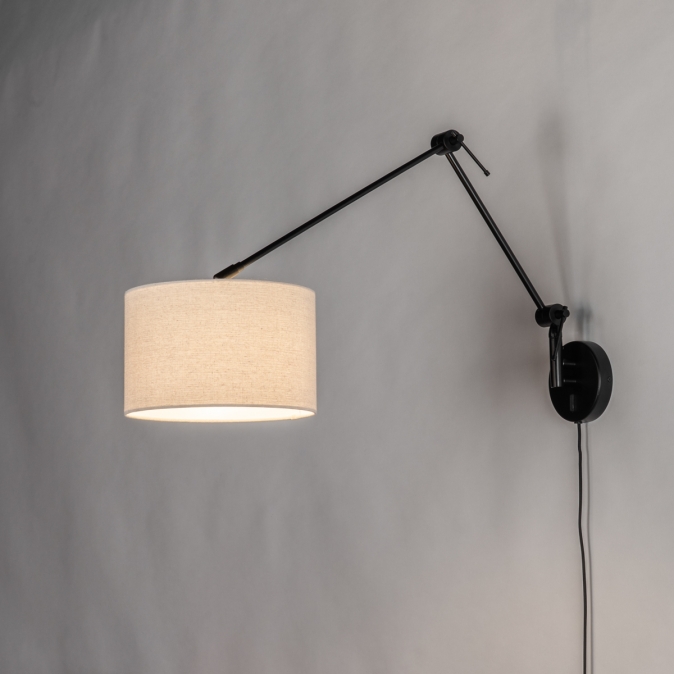 Černé nastavitelné nástěnné svítidlo s béžovým textilním stínidlem