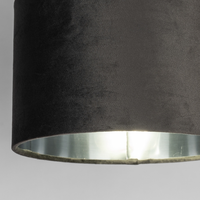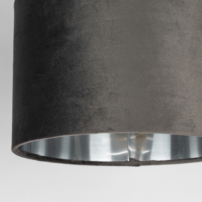 Toto nastavitelné nástěnné svítidlo se skládá z černé konstrukce a šedého sametového stínidla. Vnitřní strana stínidla je stříbrná, což zajišťuje výborný odraz světla. Samet dodává svítidlu měkký, elegantní vzhled a jeho jemný lesk vytváří různé efekty v závislosti na dopadu světla.