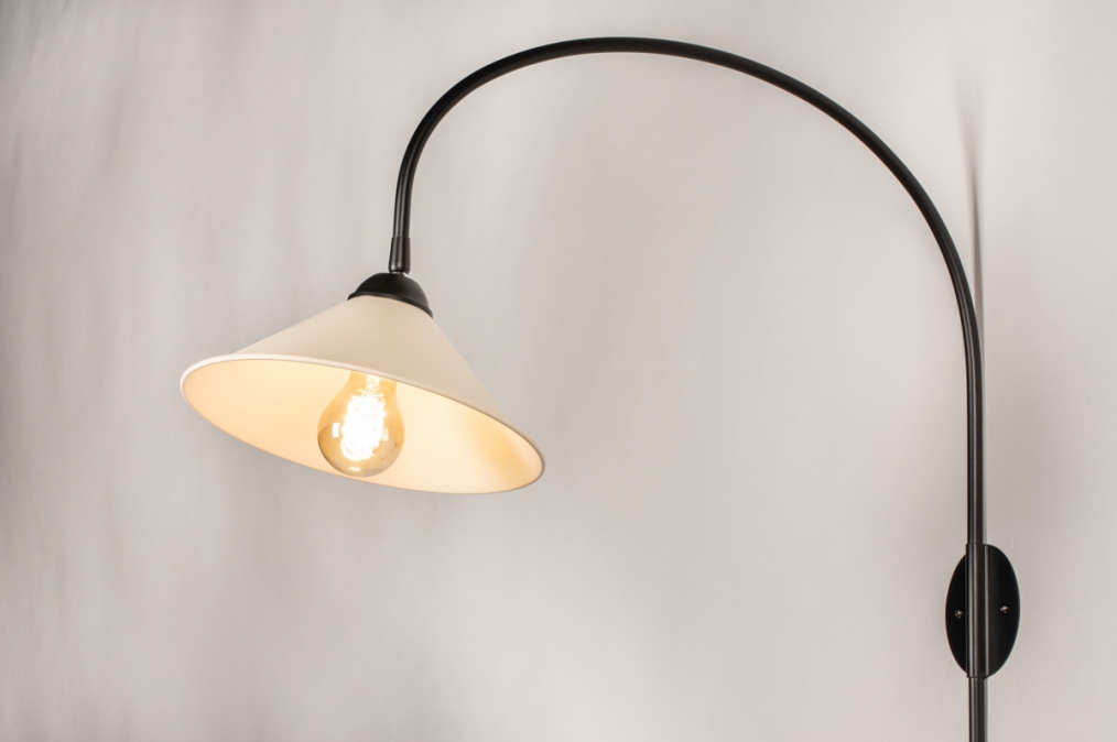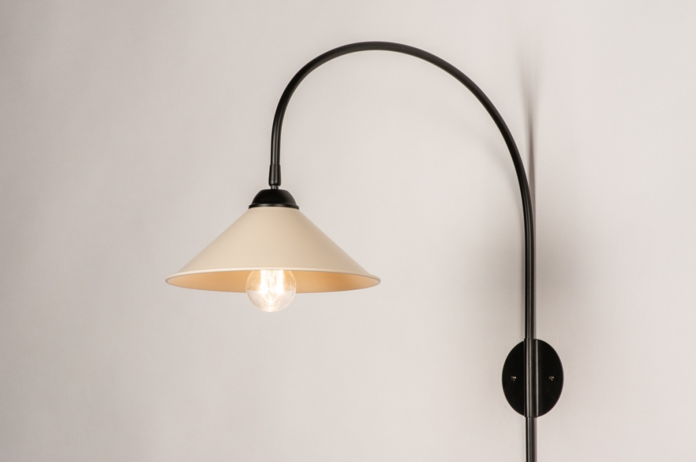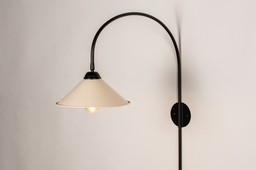 Doplňte své místo k sezení tímto svítidlem! Jak krásný a jedinečný příklad je toto velké obloukové nástěnné svítidlo s béžovým stínidlem. Potřebujete dobré světlo nad pohovkou, nad jídelním stolem nebo psacím stolem a nechcete používat stojací lampu? Toto nástěnné svítidlo je řešením! Vzhledem k tomu, že tato oblouková lampa je připevněna ke stěně, nezabírá téměř žádné místo. Funkční objekt, který zároveň obohatí interiér.