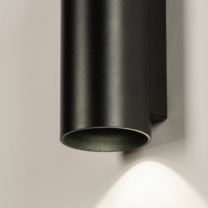 Černé trubicové nástěnné svítidlo 2x GU10 pro venkovní i vnitřní použití s vysokým krytím IP 65