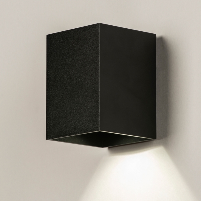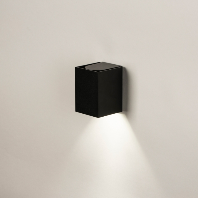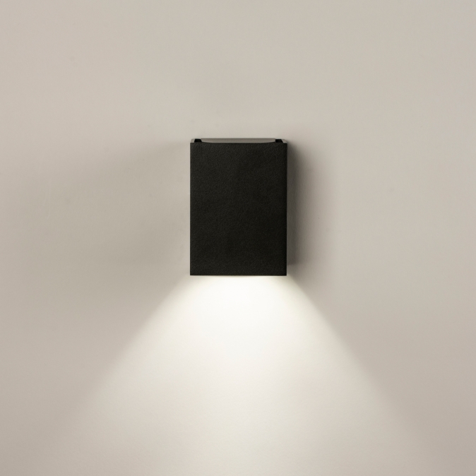 Černé hranaté nástěnné svítidlo pro venkovní i vnitřní použití s vysokým krytím IP 65