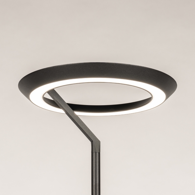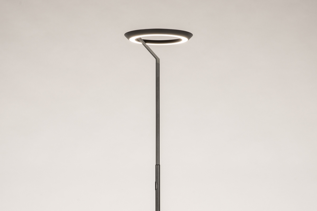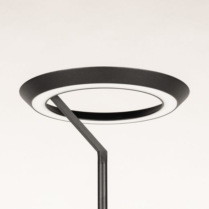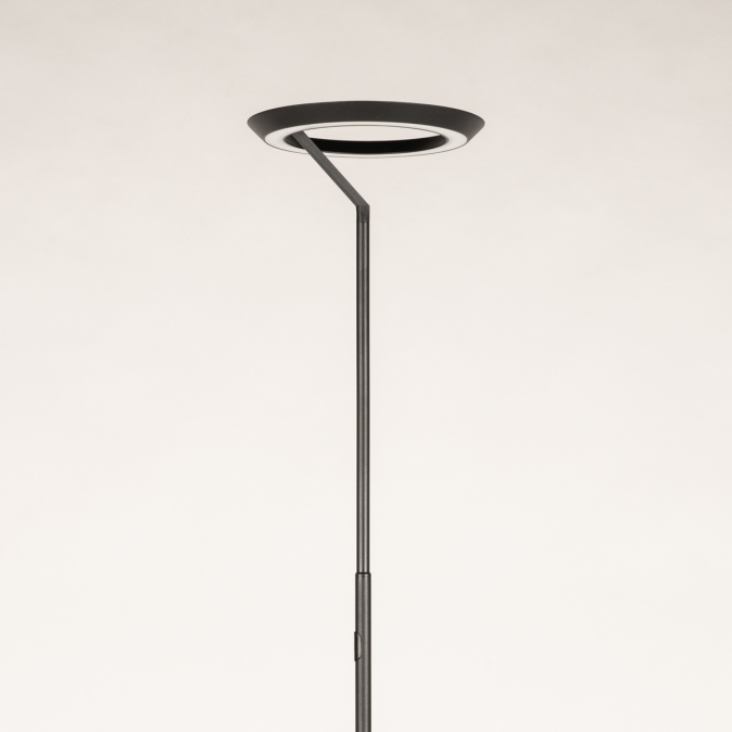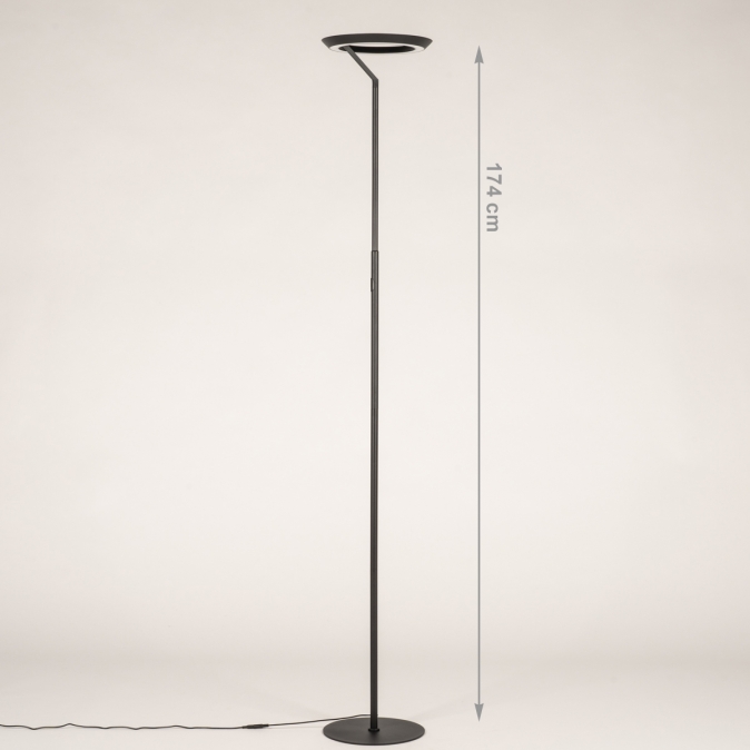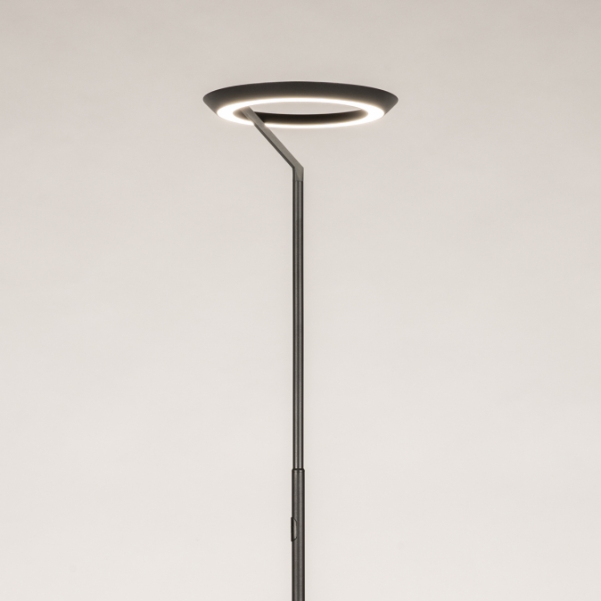 Tato moderní LED stojací lampa je nenápadná, moderní a skutečně zapadne do současného interiéru. Stojací lampa má kulaté, kompaktní stínidlo. Světlo vyzařuje jak směrem nahoru, tak i dolů. Intenzitu světla lze navíc snadno nastavit pomocí dotykového stmívače na tyči lampy.