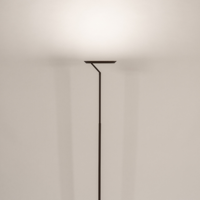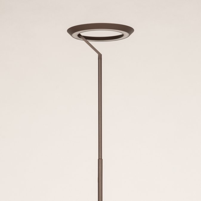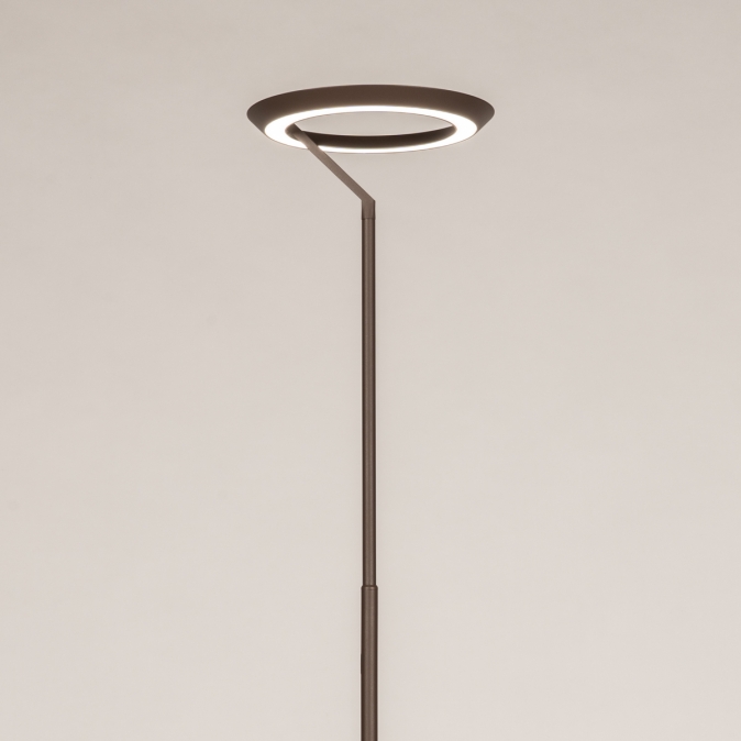 Tato moderní LED stojací lampa je nenápadná, moderní a skutečně zapadne do současného interiéru. Stojací lampa má kulaté, kompaktní stínidlo. Světlo vyzařuje jak směrem nahoru, tak i dolů. Intenzitu světla lze navíc snadno nastavit pomocí dotykového stmívače na tyči lampy.