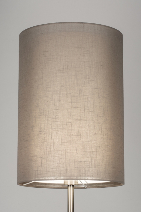 Elegantní a příjemná designová moderní stojací lampa s textilním stínítkem v hnědé taupe barvě