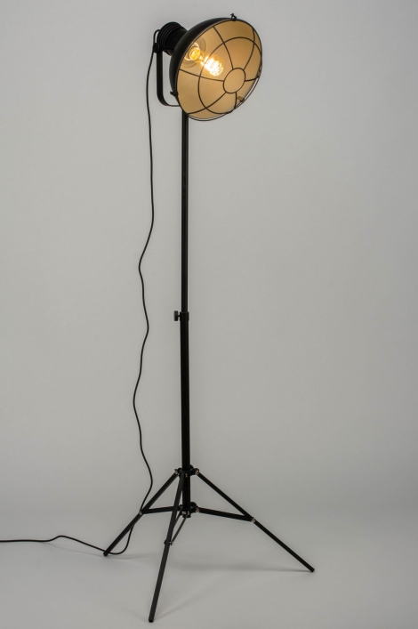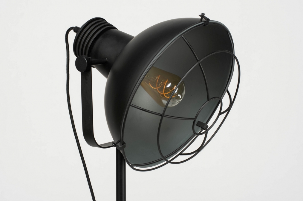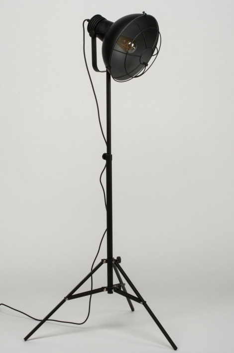 Robustní stojací stativová lampa v industriálním designu vyrobená z oceli v matně černé barvě