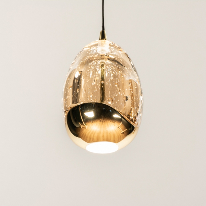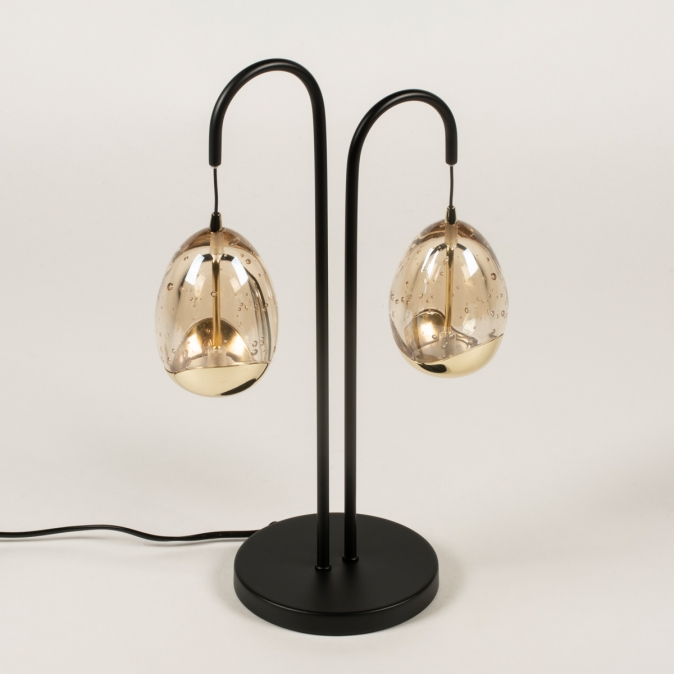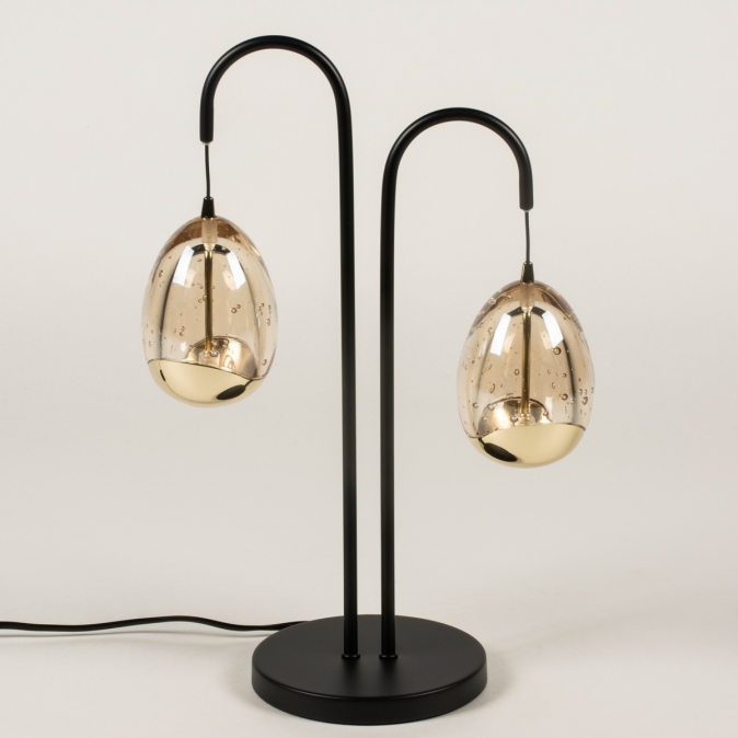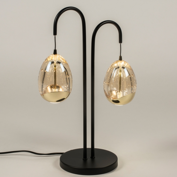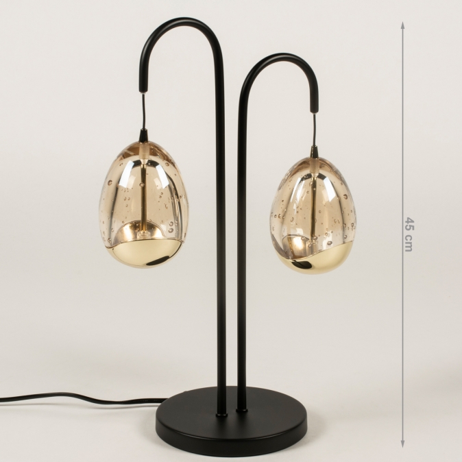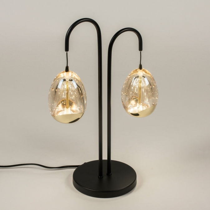 Naprostý umělecký předmět! Tak se dá popsat tato luxusní stolní lampa. Ať už je tato lampa zapnutá nebo vypnutá, opravdu vždy upoutá pozornost. Skleněné čočky jantarové barvy jsou robustní a každá má v sobě LED světlo (zdroj). Čím je ale tato lampa opravdu výjimečná, je LED žárovka ve skle, která krásně osvětlí vzduchové bubliny a lampu rozzáří.