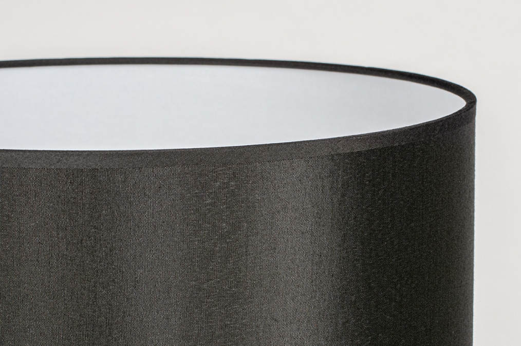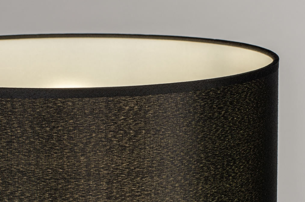 Krásná stolní lampa do ložnice na noční stolek v moderním designu vyrobená z kovu a textílie v černé barvě