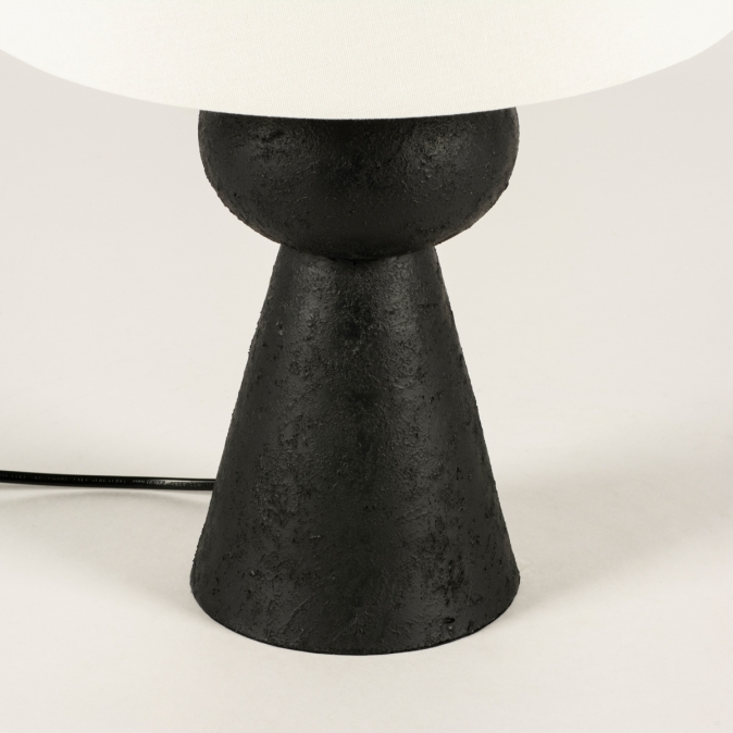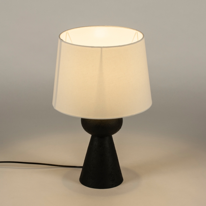 Rustikální stolní lampa s látkovým stínidlem v krémově bílé barvě. Stínidlo smetanové barvy je textilní a je mírně kónické. Tento tvar se dobře hodí ke krásným tvarům podstavce, který vyniká nejen svým tvarem, ale i pískovou strukturou. Kompaktní stolní lampa, která se hodí do venkovského stylu bydlení, ale i do rustikálních interiérů a japonského stylu. Díky svým klidným a přirozeným barvám se tato lampa hodí téměř kamkoli. Umístěte ji například na svou oblíbenou skříň, pěkný odkládací stolek nebo krásný příborník.