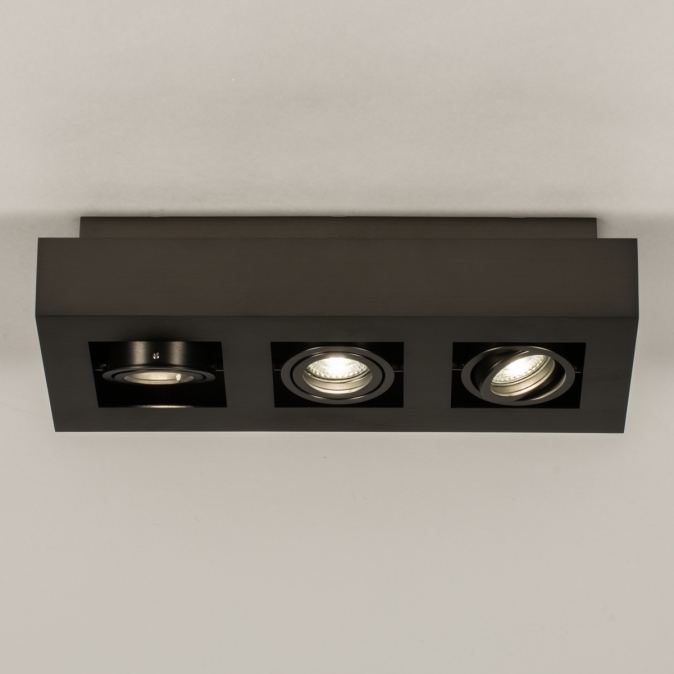 Stropní bodové svítidlo v moderním designu vyrobené z kovu v tmavě hnědé barvě.