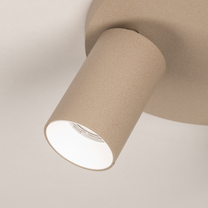 Stropní svítidlo v moderním designu vyrobeno z kovu a hliníku v tmavé béžové barvě.