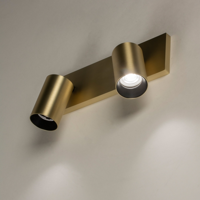 Stropní nebo nástěnné bodové svítidlo vyrobené z kovu a hliníku ve zlaté barvě