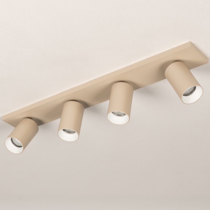 Stropní kvalitní bodové svítidlo v moderním designu se čtyřmi bodovkami. Svítidlo je vyrobeno z hliníku v béžové barvě.