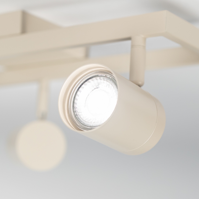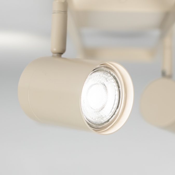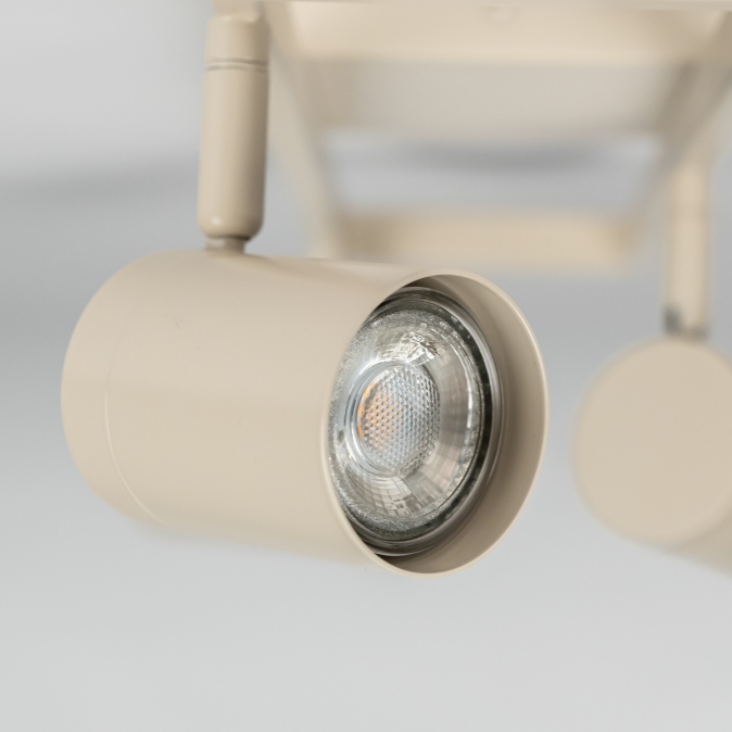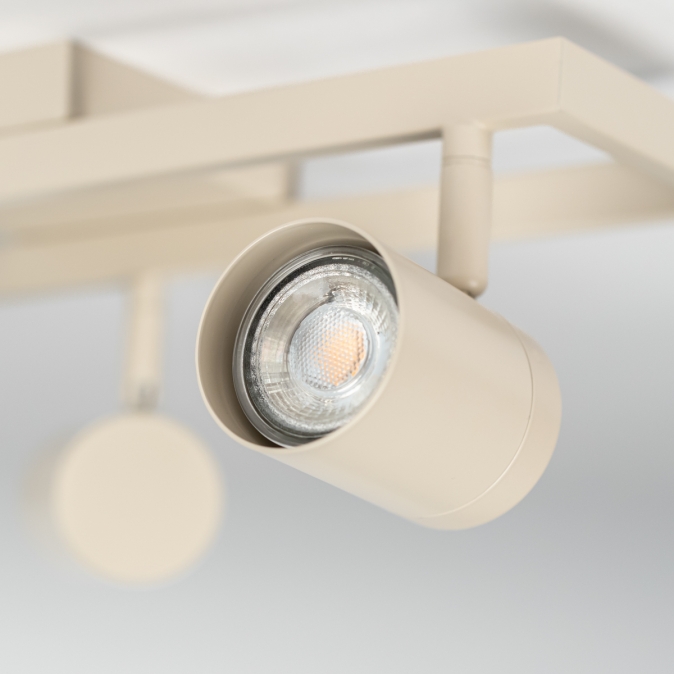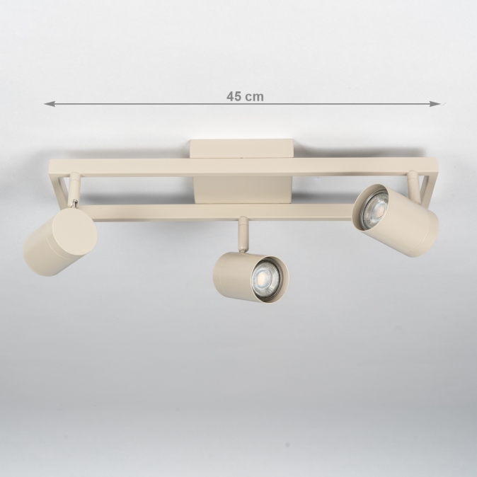 Béžové stropní svítidlo je určeno pro tři LED žárovky typu GU10. LED žárovky (nejsou součástí balení) lze velmi jednoduše vyměnit odšroubováním objímek. Pomocí stmívače můžete sami vytvořit požadovanou atmosféru. Jaký stmívač použít, záleží na vybraných LED žárovkách. Nebo si to můžete maximálně zjednodušit a zvolit LED žárovky, které lze stmívat ve třech krocích pomocí stávajícího nástěnného vypínače.