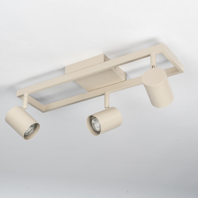 Funkční stropní osvětlení, jednotlivé reflektory lze otáčet i naklánět, takže světlo dopadne přesně tam, kde je potřeba. Díky třem světelným bodům je možné světlo rovnoměrně rozprostřít po místnosti. Úzký a čistý design v béžové barvě se hodí do každého interiéru. Toto bodové stropní svítidlo je navíc k dispozici také ve variantě se čtyřmi a šesti reflektory – ideální, pokud chcete v interiéru vytvořit jednotný vzhled.