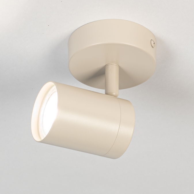 Stropní otočné bodové svítidlo vyrobené z oceli v béžové barvě.