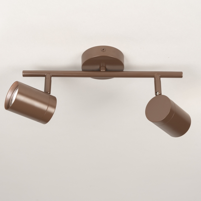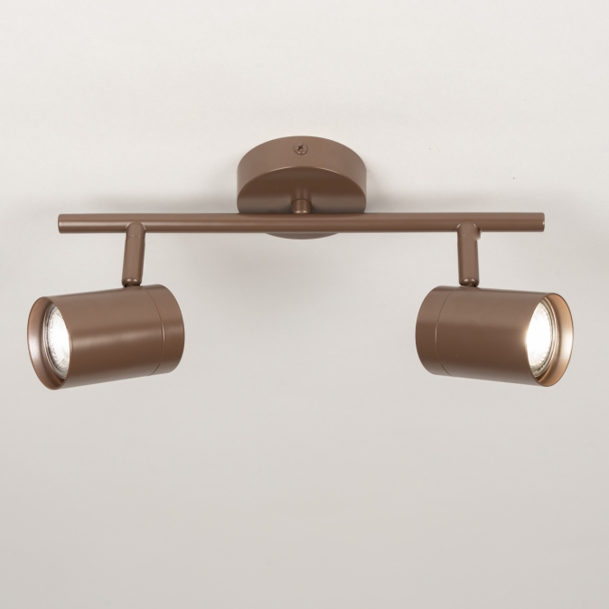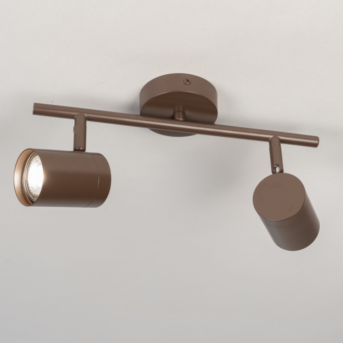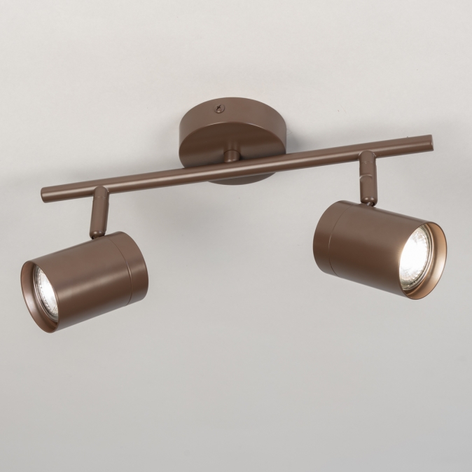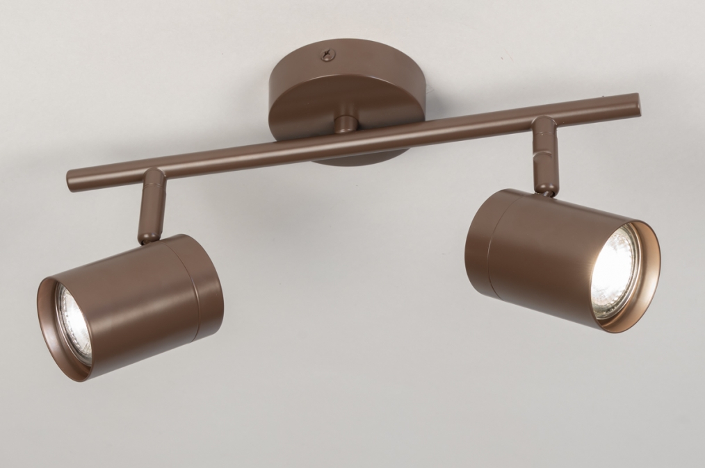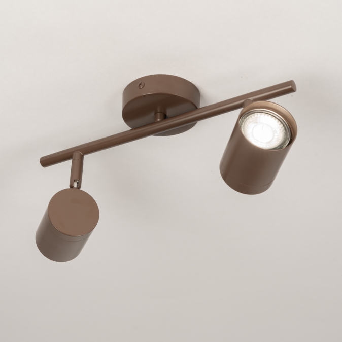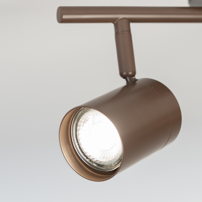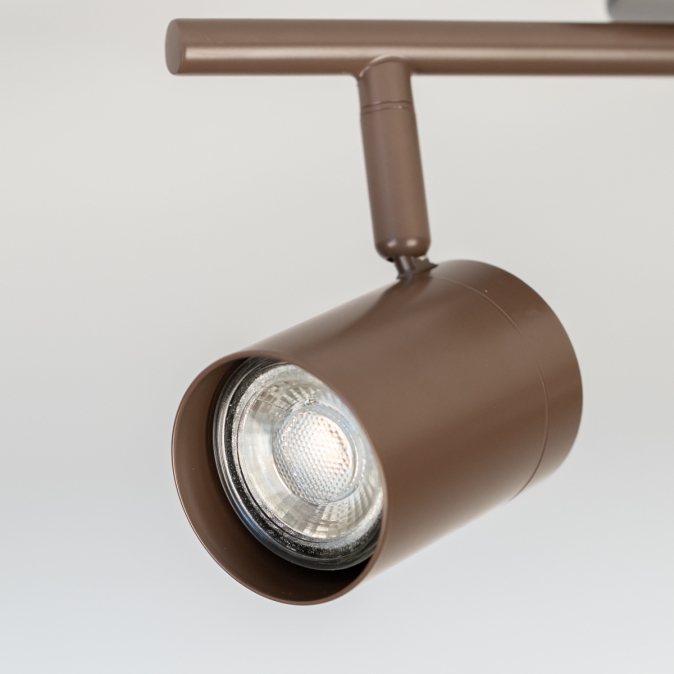 Stropní bodové svítidlo v moderním designu vyrobené z kovu v hnědé barvě.