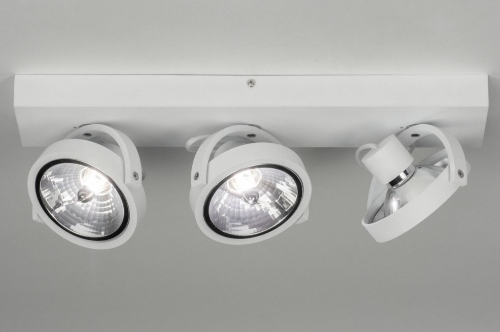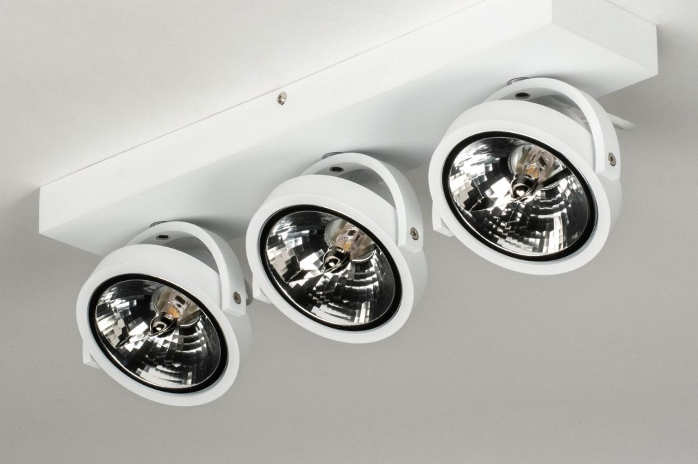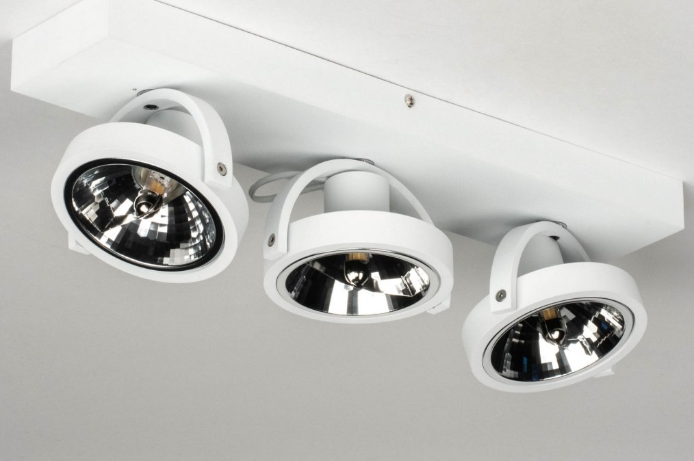 Robustní stropní svítidlo v industriálním designu se třemi světelnými body. Svítidlo je vyrobeno z hliníku v matně bílé barvě.