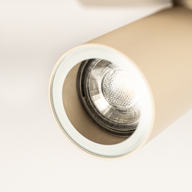 Stropní moderní bodové svítidlo do koupelny v béžové barvě s krytím IP 44.