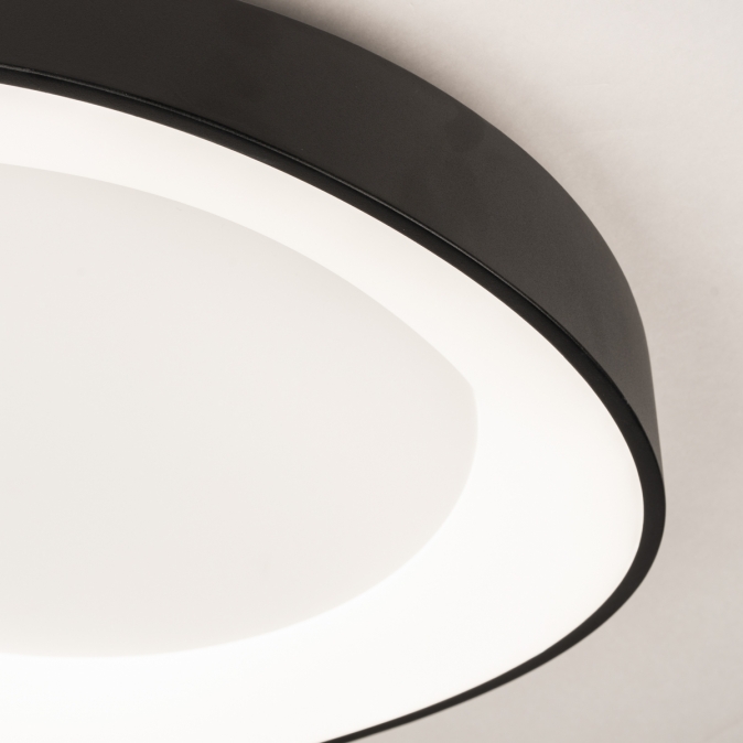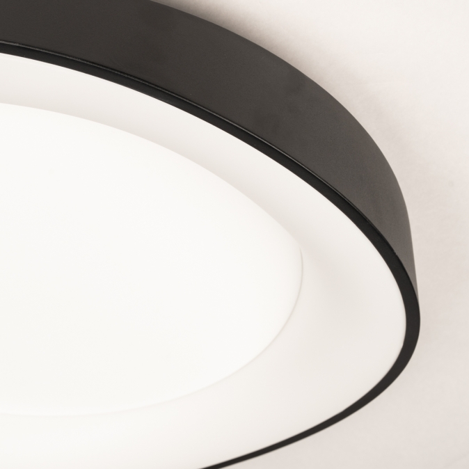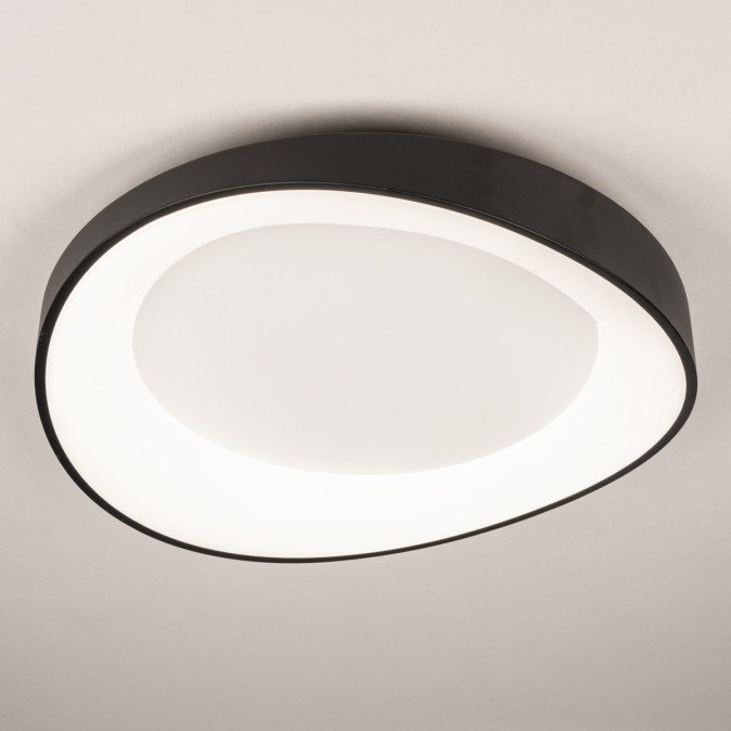 Černé organické stropní LED svítidlo, které je moderní, atmosférické a mimořádně univerzální. Toto černé stropní svítidlo s organickým tvarem představuje dokonalé spojení designu a funkčnosti. Ploché středové těleso ukrývá integrované LED osvětlení, které poskytuje rovnoměrné a příjemné světlo. Svítidlo je obklopeno jemným, plynule tvarovaným černým okrajem, jenž mu dodává jedinečný charakter. Zajímavostí je, že toto svítidlo vynikne nejen na stropě, ale také jako výrazné nástěnné svítidlo.