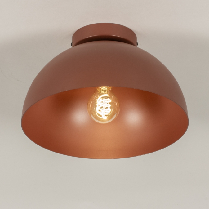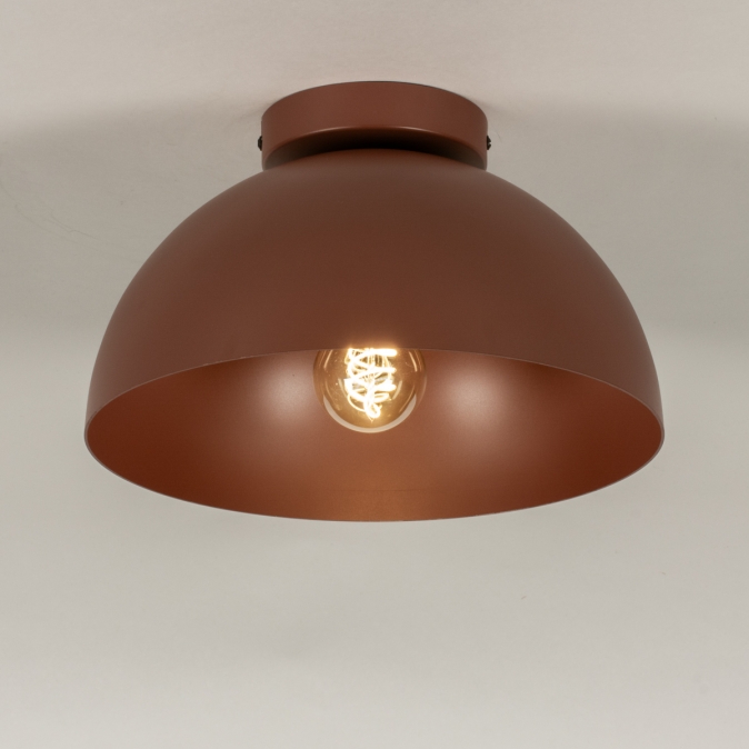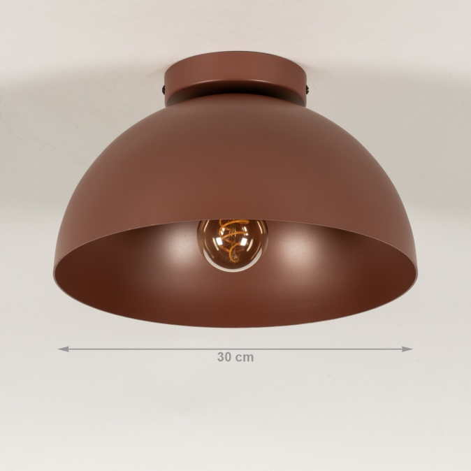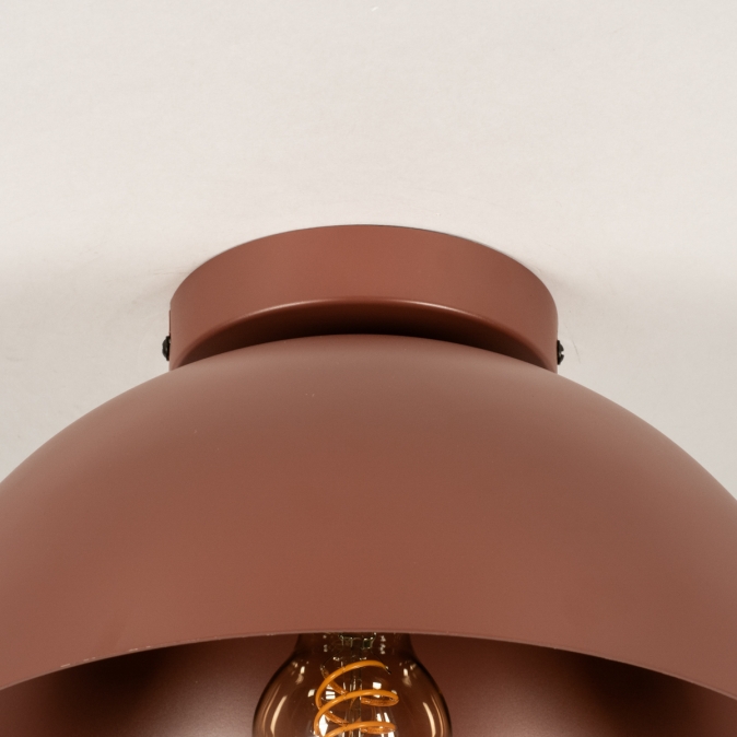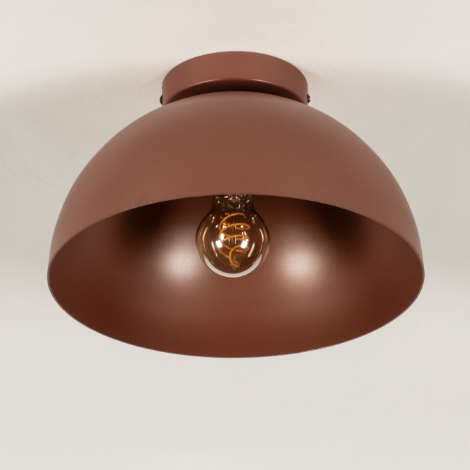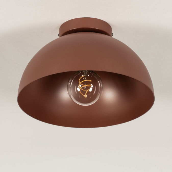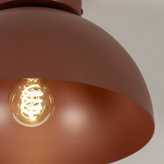 Stropní designové svítidlo vyrobené z kovu v červenohnědé barvě.
