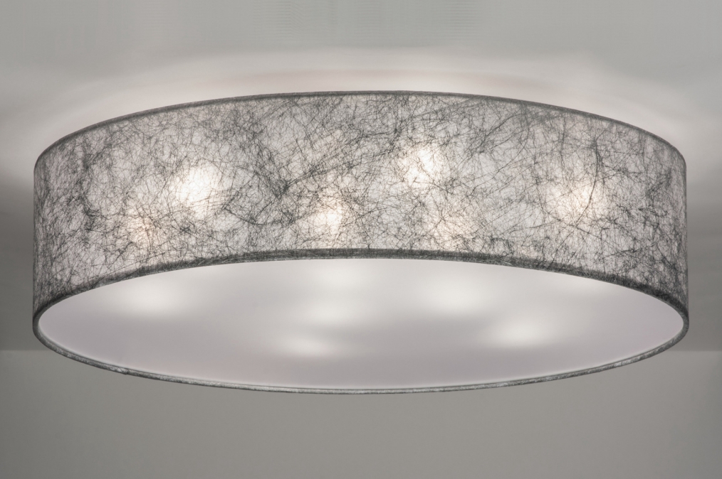 Stropní velké (70 cm) světlo, které vyzařuje elegancí a harmonií. Ušlechtilá stropní lampa má průměr 70 cm. Materiál: kvalitní tkanina v šedé barvě s krásným vzorem.