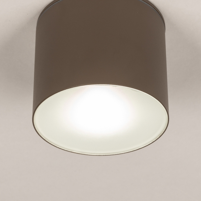 Elegantní stropní bodové svítidlo z hliníku v hnědé barvě se skleněným krytem