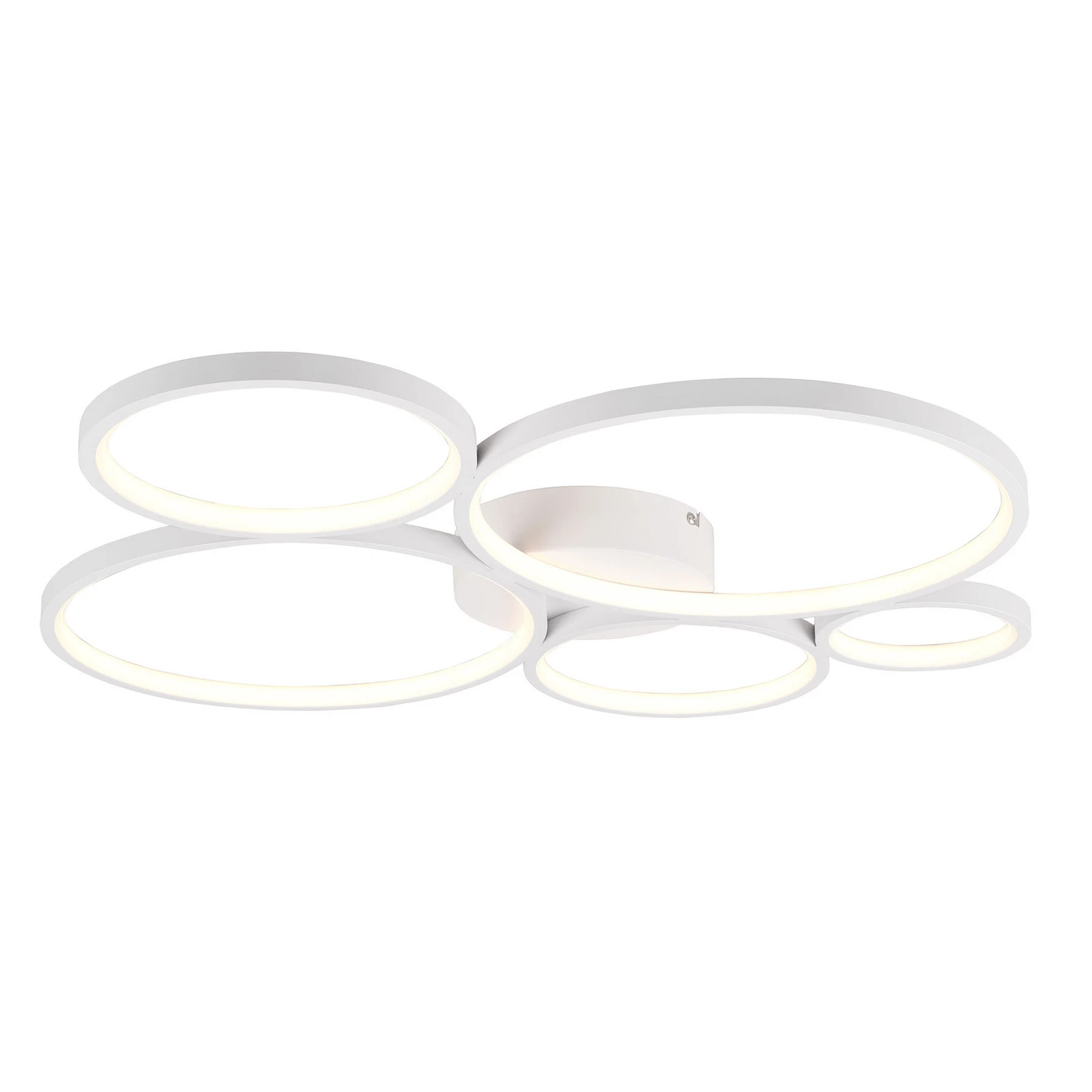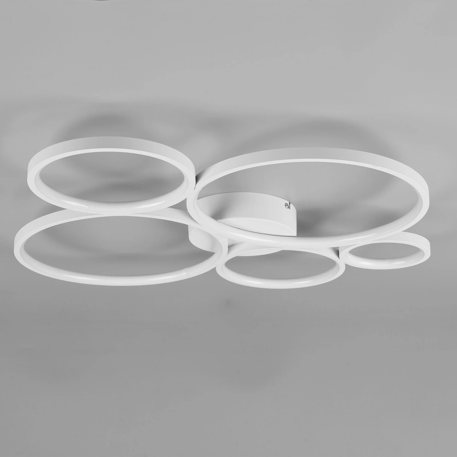 Toto bílé LED stropní svítidlo má štíhlou konstrukci složenou z několika kruhů různých velikostí, které jsou spojeny dohromady. Svítidlo má vysoký světelný výkon, ale lze jej snadno stmívat ve třech stupních. Světlo ztlumíte pomocí klasického vypínače a nepotřebujete tedy samostatný stmívač. Zapnutím a vypnutím můžete lampu postupně stmívat. Tato funkce stmívání zajišťuje, že budete mít vždy to správné osvětlení; lampa, která je příjemná na práci nebo čtení, ale může být použita jako náladové příjemné teplé světlo. LED osvětlení je ekonomické a ekologické. Svítidlo se navíc nezahřívá.