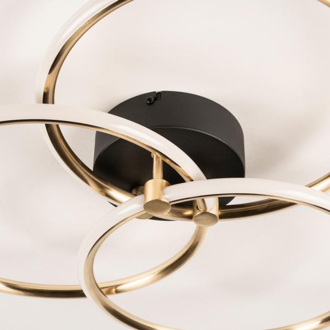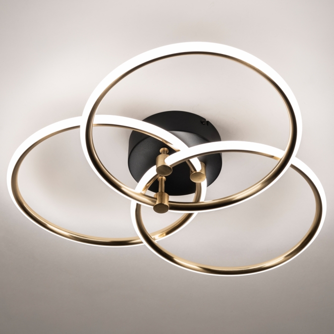Elegantní, moderní a funkční stropní LED osvětlení. Svítidlo má štíhlou konstrukci a skládá se ze tří vzájemně propojených kruhů, což mu dodává jedinečný vzhled. Díky oblým tvarům a nadčasové barevné kombinaci se hodí do jakéhokoli stylu bydlení. Navíc poskytuje vysoký světelný výkon a lze jej snadno stmívat i bez externího stmívače.