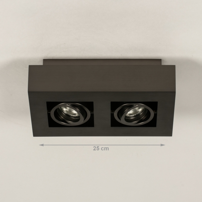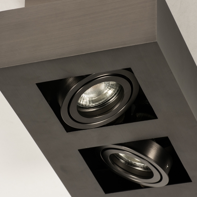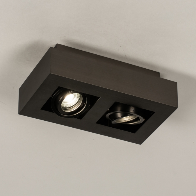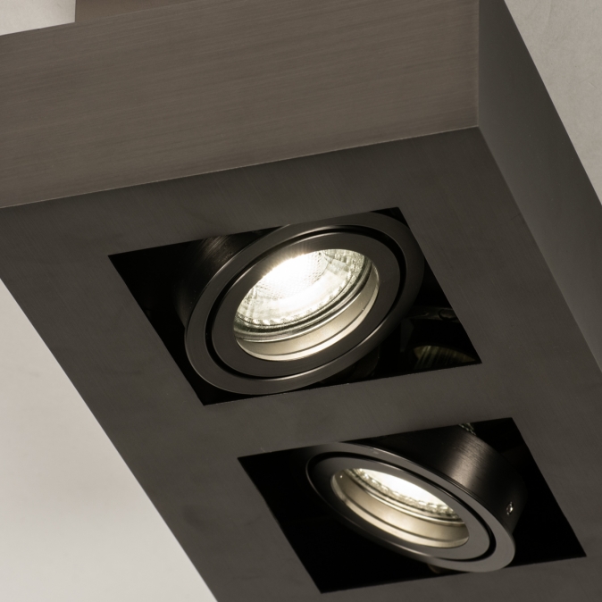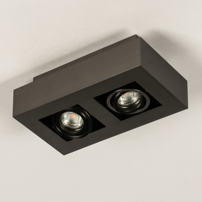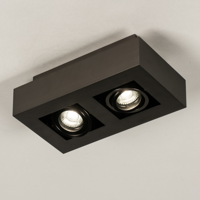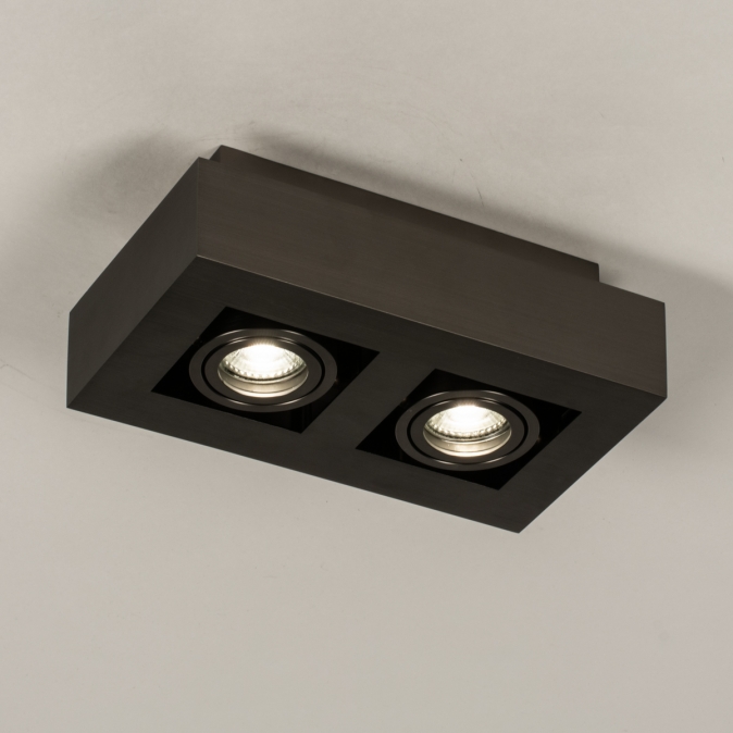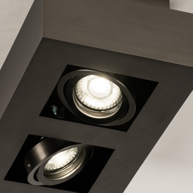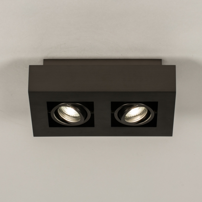 Stropní hranaté hnědé bodové svítidlo do obýváku nebo kuchyně v moderním designu se dvěma stmívatelnými LED zdroji světla
