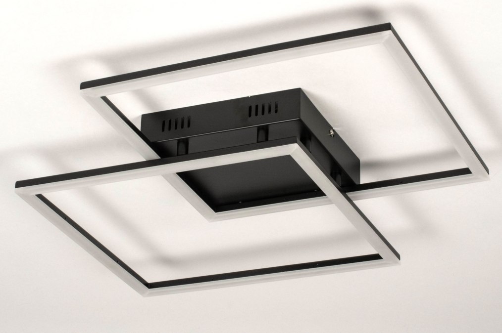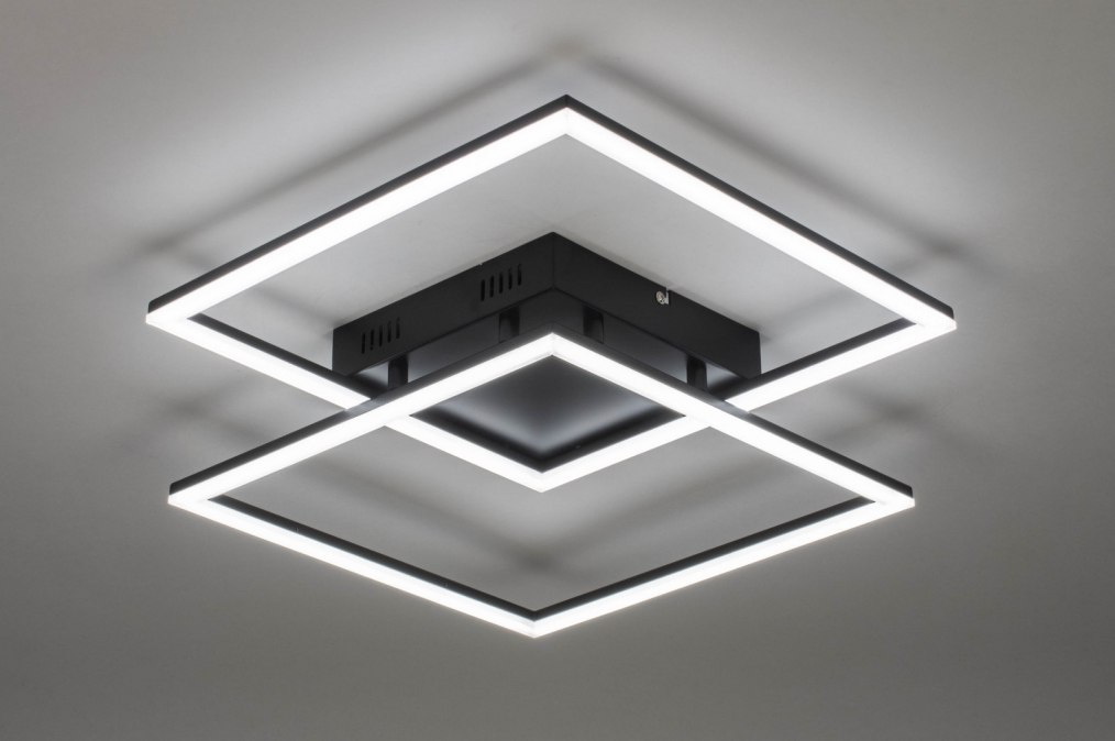 Moderní výkonné stropní stmívatelné LED svítidlo v minimalistickém designu vyrobené ze dvou kovových černých čtverců