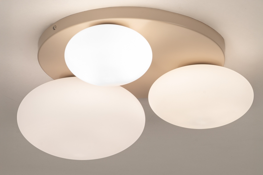 Béžová a opálové sklo, to je kombinace, ze které vyzařuje luxus. Toto stropní svítidlo je díky třem hravě rozmístěným oválným skleněným koulím různých velikostí skutečným poutačem v místnosti. To, co dělá toto svítidlo výjimečným, je nenápadná béžová stropní deska, která koule podpírá a krásně odráží světlo. Výsledkem je teplý a atraktivní vzhled, ideální pro stylový interiér. Perfektní do chodby, ložnice, kuchyně nebo jako výrazný prvek v obývacím pokoji.