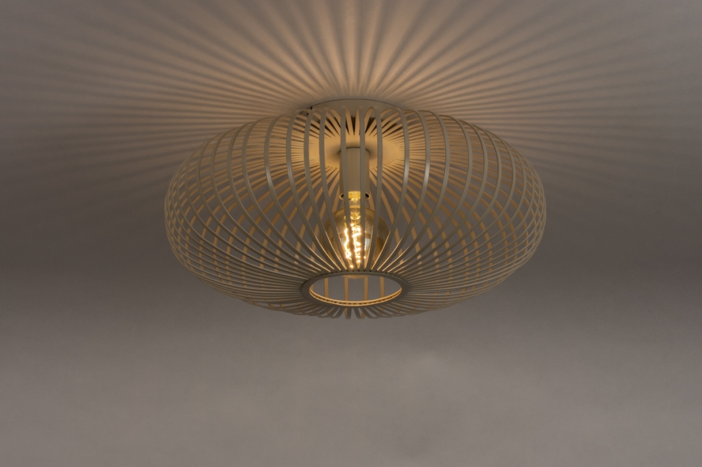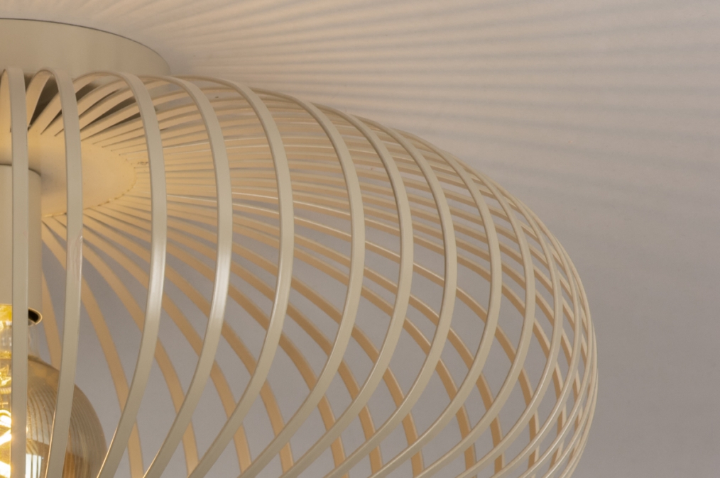 Robustní stropní svítidlo v atraktivním designu vyrobeno z kovu v béžové barvě.