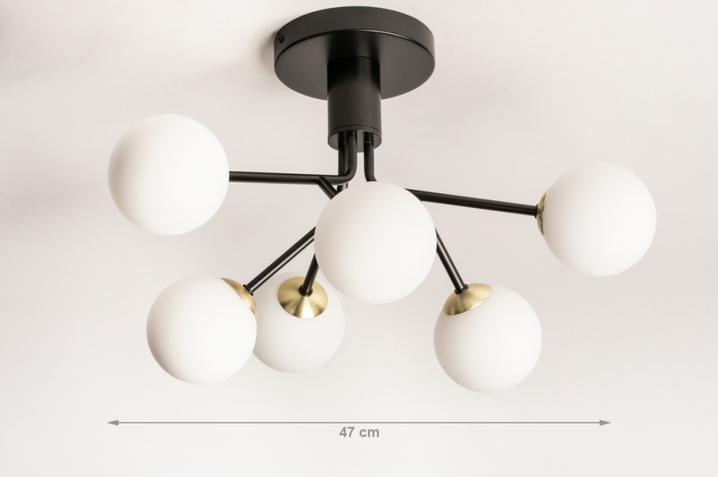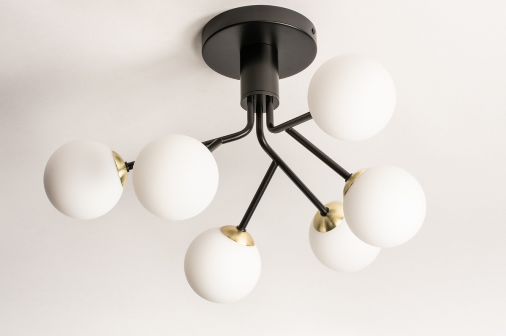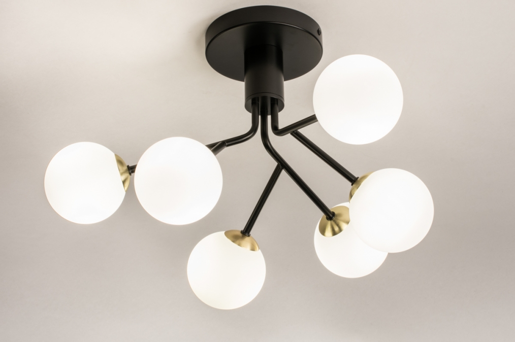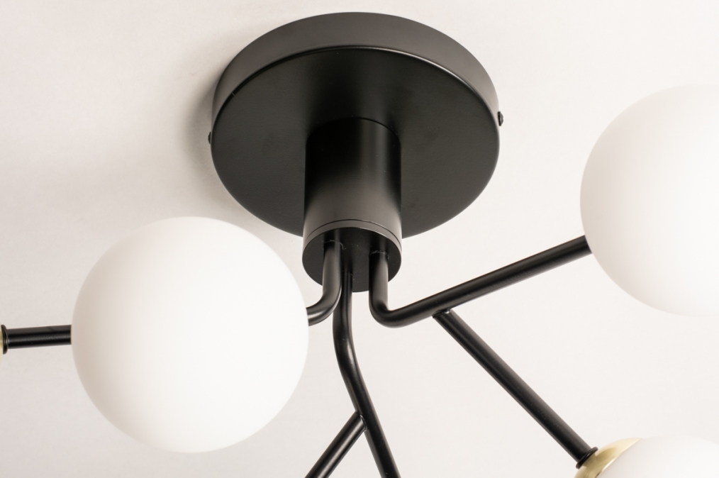 Stropní skupinové svítidlo v atraktivním moderním designu vyrobeno z kovu a bílého opálového skla.