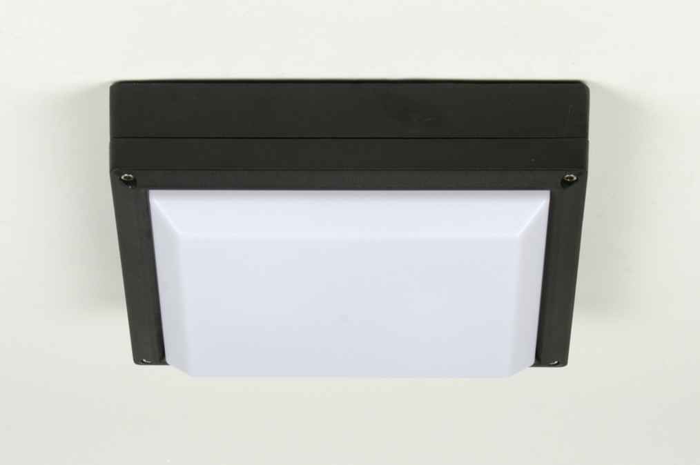 Moderní stropní svítidlo vyrobeno z polykarbonátového skla a hliníku. Montážní deska z hliníku je v provedení černé barvy a sklo je v barvě mléčné.