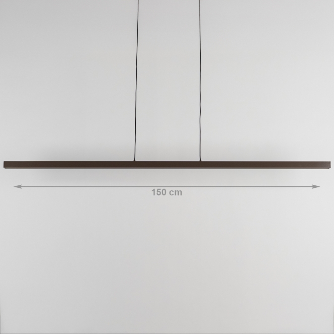 Svítidlo je vyrobeno z hliníku a je 150 cm široké. Díky neutrálnímu elegantnímu tvaru se lampa skvěle hodí nad jídelní stoly, pracovní stoly, ale i nad kancelářský stůl do pracovny. LED svítidlo lze snadno stmívat pomocí stmívače Tronic.
