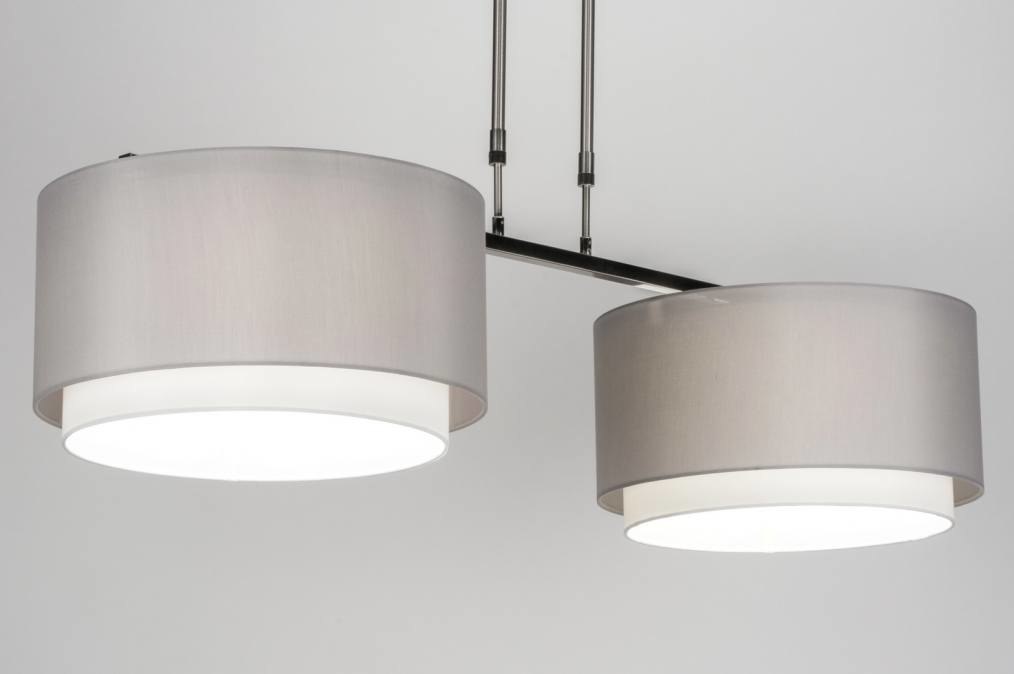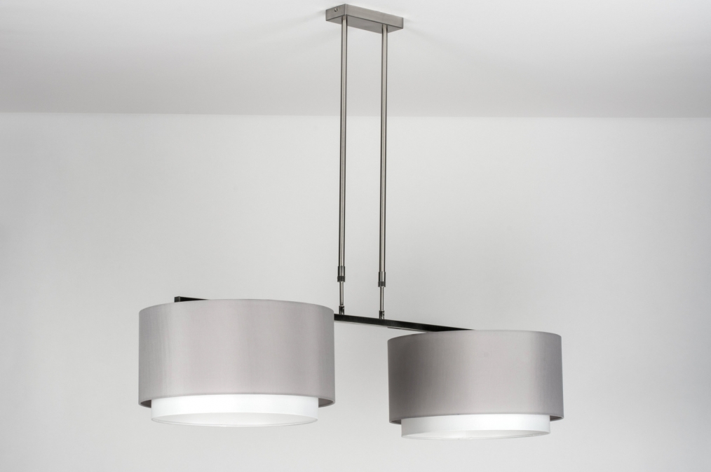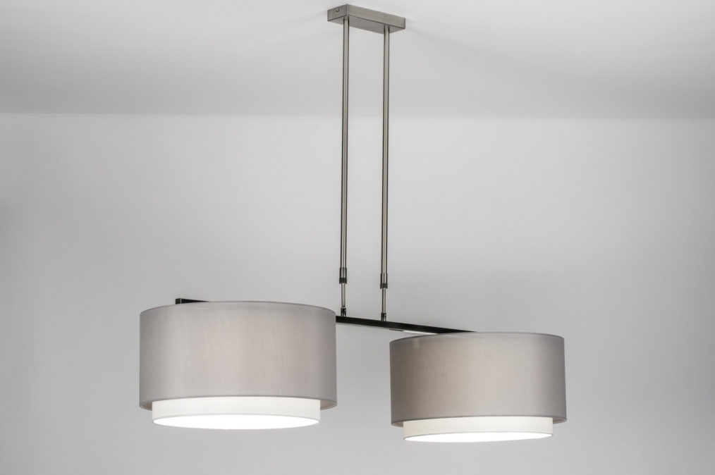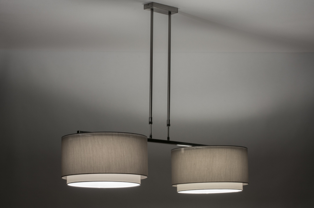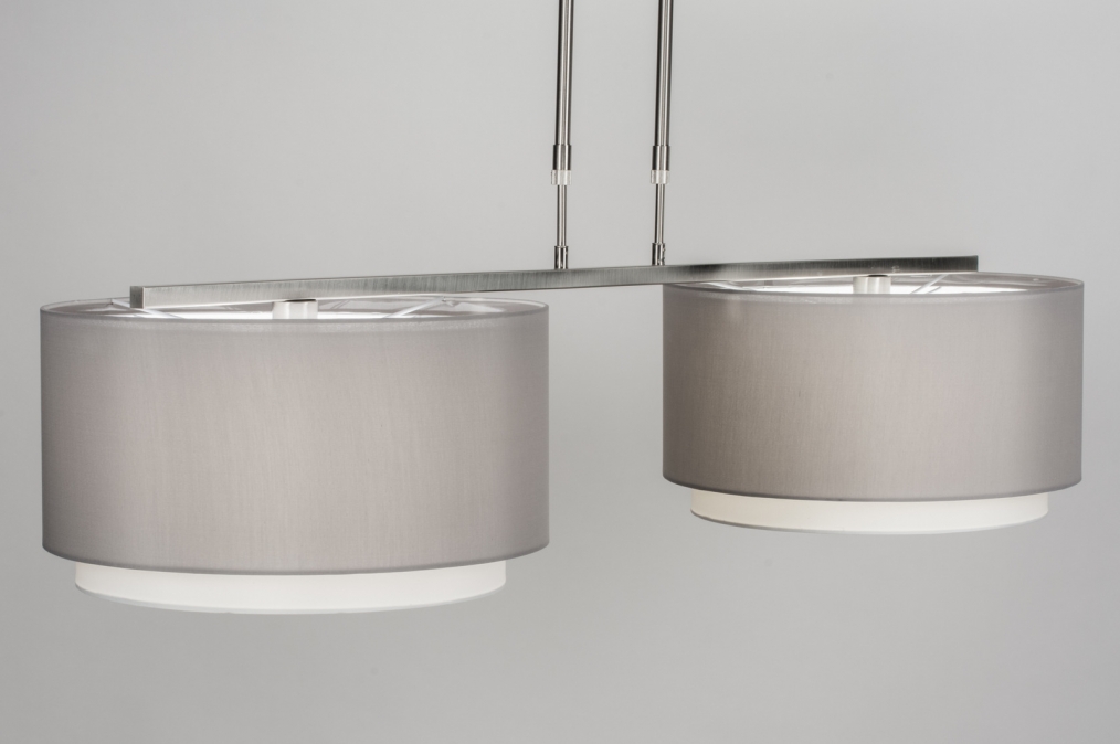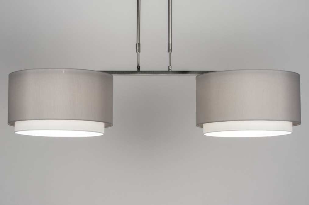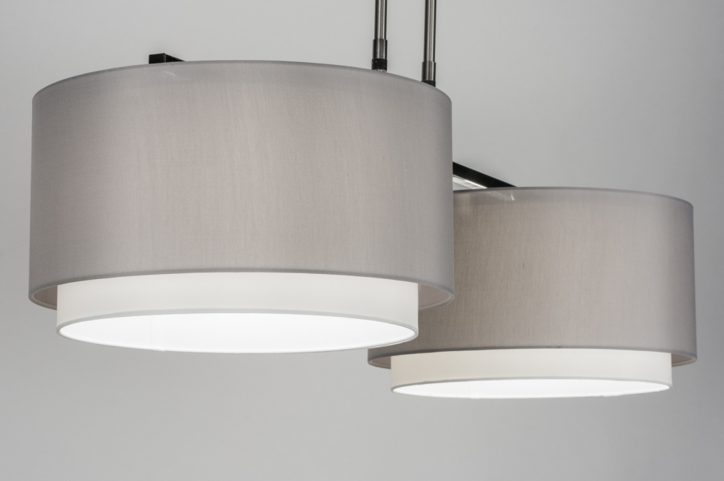 Závěsné moderní svítidlo nad jídelní stůl v elegantním designu vyrobeno z oceli a textílie v šedé barvě