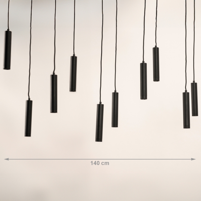 Černé velké trubicové minimalistické závěsné svítidlo nad jídelní stůl