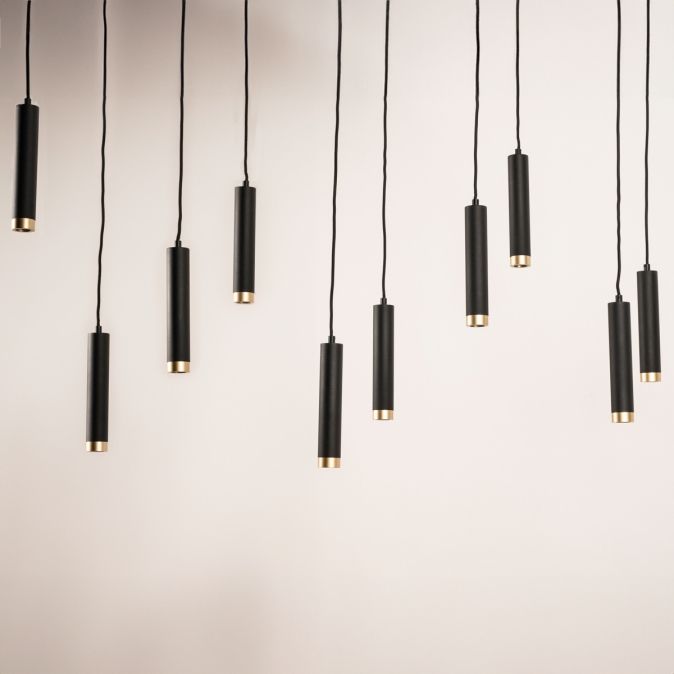 Lze vytvořit do tří možných stylů, kompletně černé, s mosazným detailem (kroužkem) nebo by hlavní roli měl hrát malý LED zdroj světla? S tímto světlem je to všechno možné! Černá závěsná lampa je dodávána s černými a mosaznými kroužky. Sami se rozhodnete, zda mají trubky mít mosazný detail nebo zůstanou zcela černé. Nebo nepoužijete prsteny, ale pět krásných světelných zdrojů s LED vláknem. To dává tomuto nadčasovému, ale modernímu závěsnému svítidlu zcela jiný vzhled a také poskytuje zcela jiný světelný efekt. Jedna lampa, tři různé vzhledy.