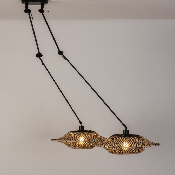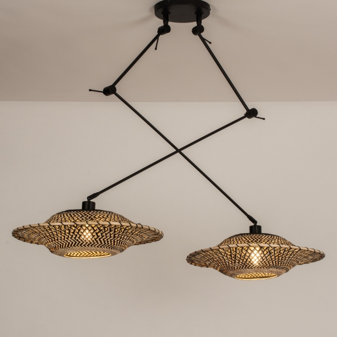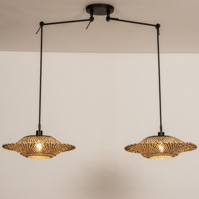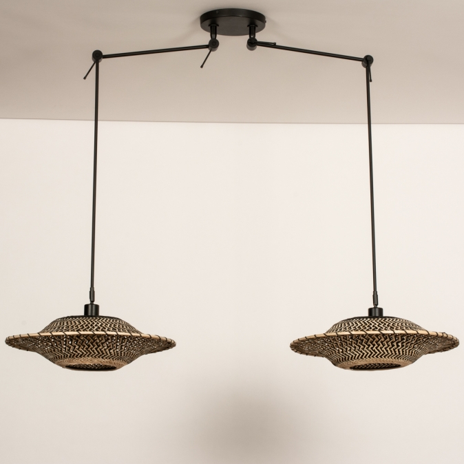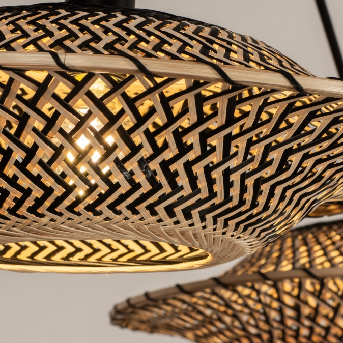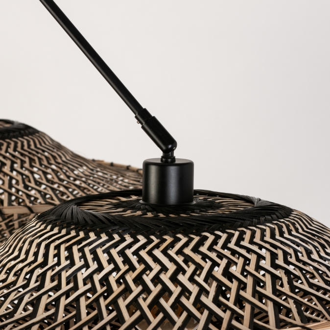 Flexibilní a praktické velké osvětlení se stínidlem z ratanu v tmavé barvě. Otočné, extra dlouhé a nastavitelné závěsné svítidlo. Ramena jsou vyrobena z oceli v černé barvě. Extra dlouhá tyč je výškově nastavitelná. Různé možnosti nastavení tohoto svítidla zajišťují vlastní preference použití a nastavení optimálního osvětlení. Tato lampa je také otočná na stropní desce. Závěsné svítidlo, které bude jistě skvělým doplňkem Vašeho interiéru. Ideální svítidlo do kuchyně nad jídelní stůl. Ratanové stínítko tohoto svítidla dodává velice příjemnou atmosféru. Svítidlo je dodáváno ve třech baleních v originální krabici. Podívejte se také na další svítidla z řady Domenico.