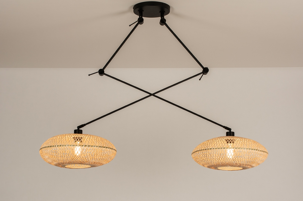 Flexibilní a praktické velké osvětlení se stínidlem z ratanu v přírodní barvě. Otočné, extra dlouhé a nastavitelné závěsné svítidlo. Ramena jsou vyrobena z oceli v černé barvě. Extra dlouhá tyč je výškově nastavitelná. Různé možnosti nastavení tohoto svítidla zajišťují vlastní preference použití a nastavení optimálního osvětlení. Tato lampa je také otočná na stropní desce. Závěsné svítidlo, které bude jistě skvělým doplňkem Vašeho interiéru! Ideální svítidlo do kuchyně nad jídelní stůl. Ratanové stínítko tohoto svítidla dodává velice příjemnou atmosféru. Svítidlo je dodáváno ve třech baleních v originální krabici. Podívejte se také na další svítidla z řady Domenico.
