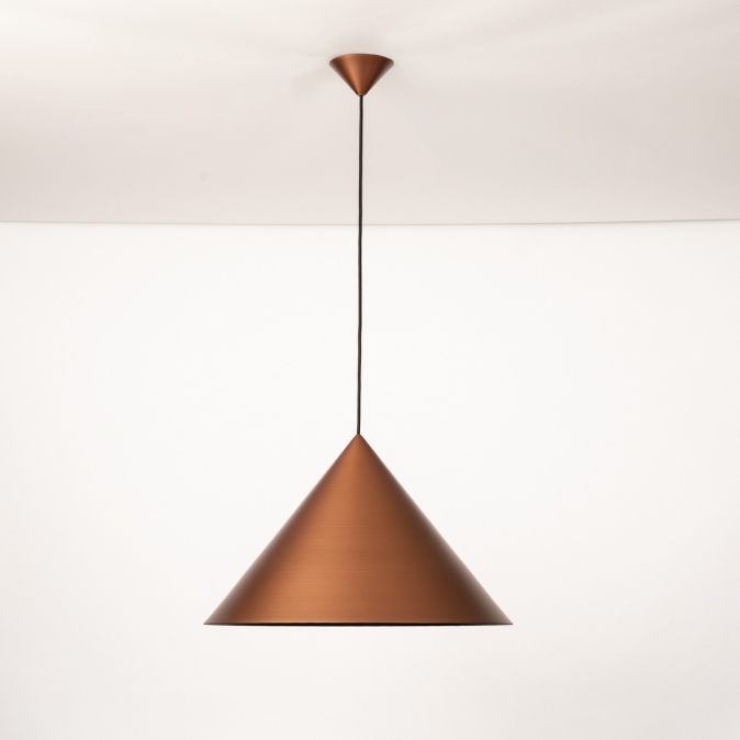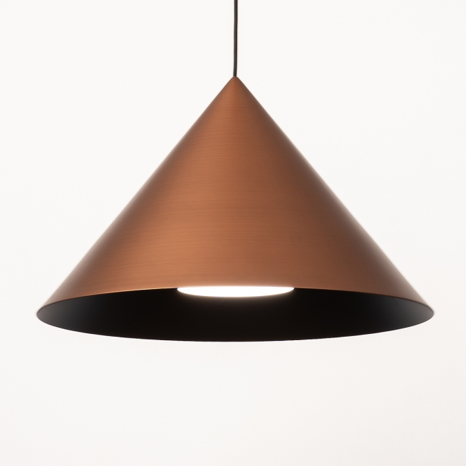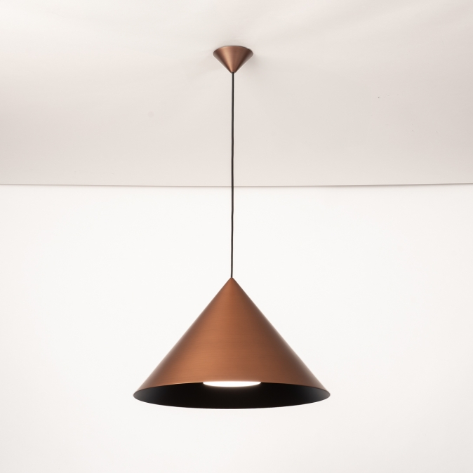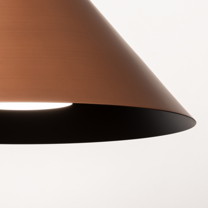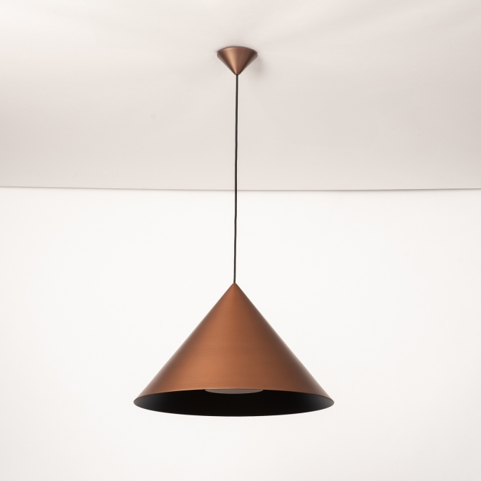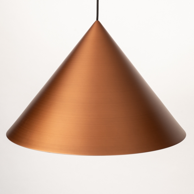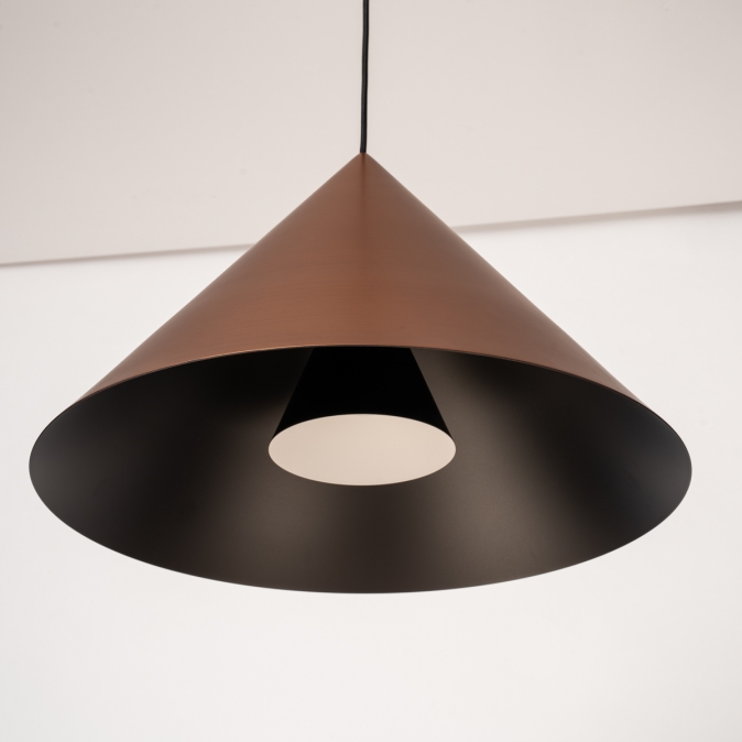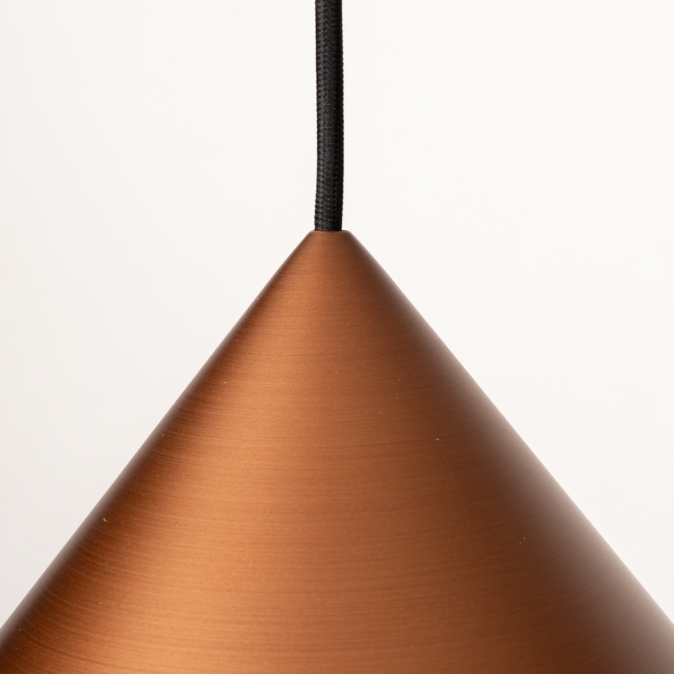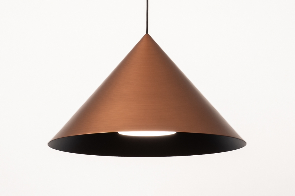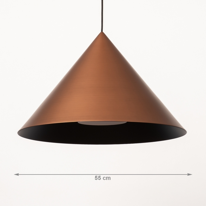 Toto závěsné svítidlo je vyrobeno z robustního kovu a vyzařuje sílu i styl. Silný kontrast mezi měděnou a černou to komplexně dotváří. Toto kuželovité závěsné svítidlo je nápadně krásně zpracované. Například uvnitř velkého měděného stínidla je malé černé stínidlo, které obsahuje objímku E27 pro žárovku. Tento detail dodává lampě obzvláště elegantní vzhled. Stručně řečeno, toto stylové závěsné svítidlo je skutečným designovým prvkem a skvěle vypadá nad jídelním stolem, konferenčním stolkem, kuchyňským ostrůvkem, ale také například nad schodištěm.