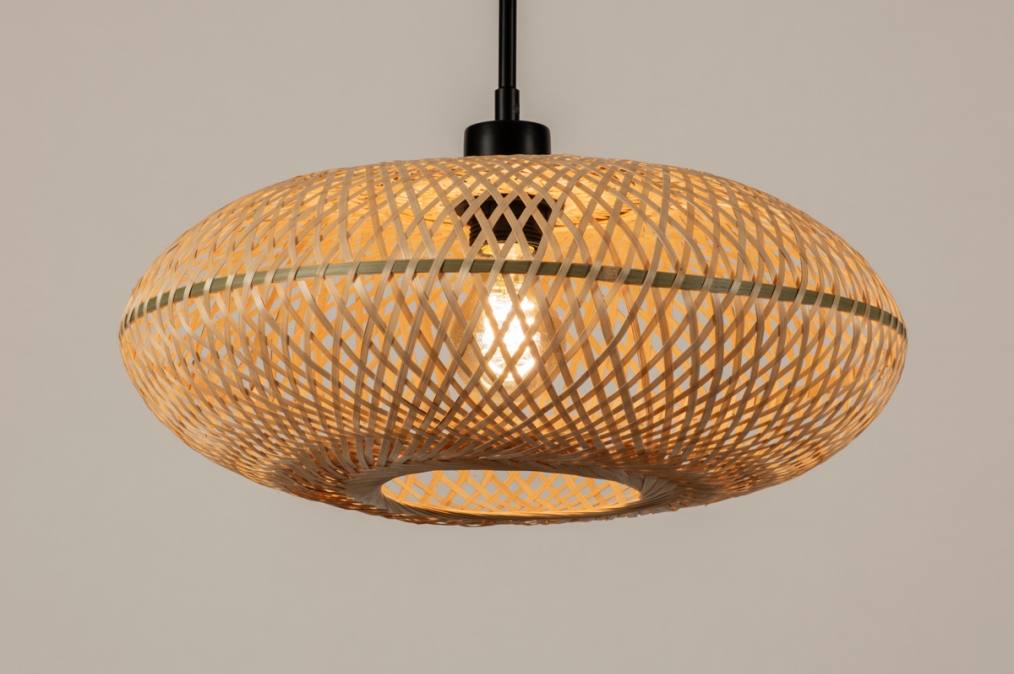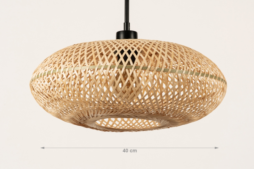 Toto ratanové závěsné svítidlo dokonale zapadá do trendu interiérového designu s přírodními materiály. Tyto přírodní materiály vidíme v různých stylech interiérů, jako je skandinávský a japonský. Stínidlo je ručně vyrobené a má průměr 40 cm.